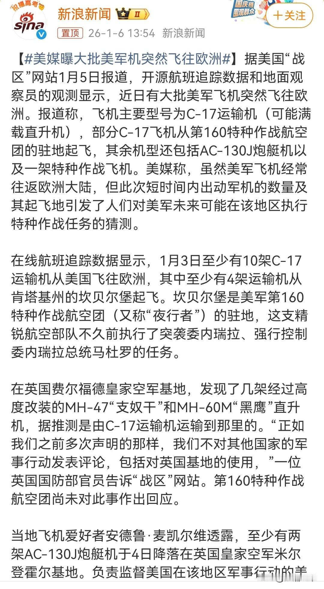 大批军机飞往欧洲!现在谁还说美国是纸老虎?它是真老虎啊。真会咬人的,谁不怕都是扯蛋。委瑞内拉事件收获了信心,可以八方出击了[吐舌]。 就川普这目标清晰的超强执行力,还有那股不管你说啥我都不在乎的不要脸劲,真的很难不成功[抠鼻]。现阶段美国必须解决的问题,为了维护自己的霸权地位,哪怕是发动战争也在所不惜。 这次又准备绑架哪个总统[笑哭],要打伊朗,还是重装支援乌克兰?[思考]不只格陵兰岛,别的国家也危险!川普不会按套路出牌! 明火执仗的打劫开始了!