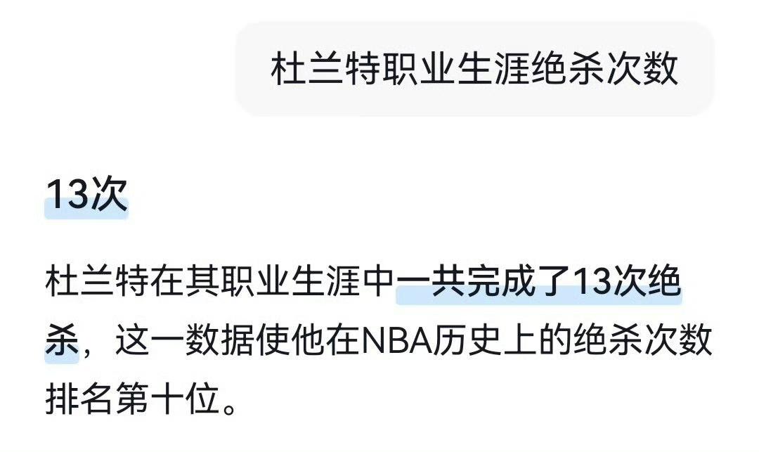 徐静雨老师又开始胡咧咧了、他认为绝杀次数历史排名第十位的杜兰特,整个职业生涯鲜有绝杀 杜兰特职业生涯13次绝杀的具体场次及关键细节如下(结合官方统计与赛事记载): 1. 2007年11月17日(超音速时期):双加时最后2.1秒,面对老鹰霍福德防守命中三分绝杀,助球队126-123取胜,这是其生涯首次绝杀。 2. 2008年2月3日(雷霆时期):最后59秒命中致胜三分,雷霆86-85击败尼克斯。 3. 2011年1月23日(雷霆时期):终场前6.5秒,迎着尼克斯加里纳利封盖投中三分绝杀,比分98-98平后完成致命一击。 4. 2011年4月28日(季后赛,雷霆时期):首轮G5对阵掘金,最后12秒接哈登传球命中制胜球,雷霆淘汰掘金。 5. 2011年12月30日(雷霆时期):最后1.4秒超远三分反绝杀小牛,此前卡特刚命中三分反超,杜兰特完成极致翻盘。 6. 2012年季后赛首轮(雷霆时期):面对小牛,最后1.5秒迎着马里昂防守抛投绝杀,雷霆99-98险胜。 7. 2012年西部半决赛(雷霆时期):对阵湖人G4,末节关键球命中助球队拿下赛点,完成系列赛绝杀级制胜球。 8. 2014年1月5日(雷霆时期):终场前4秒跳投准绝杀森林狼,单节轰23分,助球队115-111逆转。 9. 2014年1月28日(雷霆时期):最后1.5秒面对老鹰三人防守命中跳投,雷霆111-109险胜。 10. 2014年3月22日(雷霆时期):双加时最后1.7秒超远三分绝杀猛龙,全场砍下51分,率队119-118险胜。 11. 2016年2月4日(雷霆时期):最后0.5秒超远三分准绝杀魔术,雷霆117-114取胜。 12. 2017年、2018年总决赛(勇士时期):连续两年总决赛G3,面对骑士均在最后时刻命中三分准绝杀,分别助勇士拿下总冠军赛点与卫冕关键战。 13. 2026年1月6日(火箭时期):最后1.1秒三分绝杀太阳,火箭100-97完成赛季三杀太阳,杜兰特全场26分10篮板。