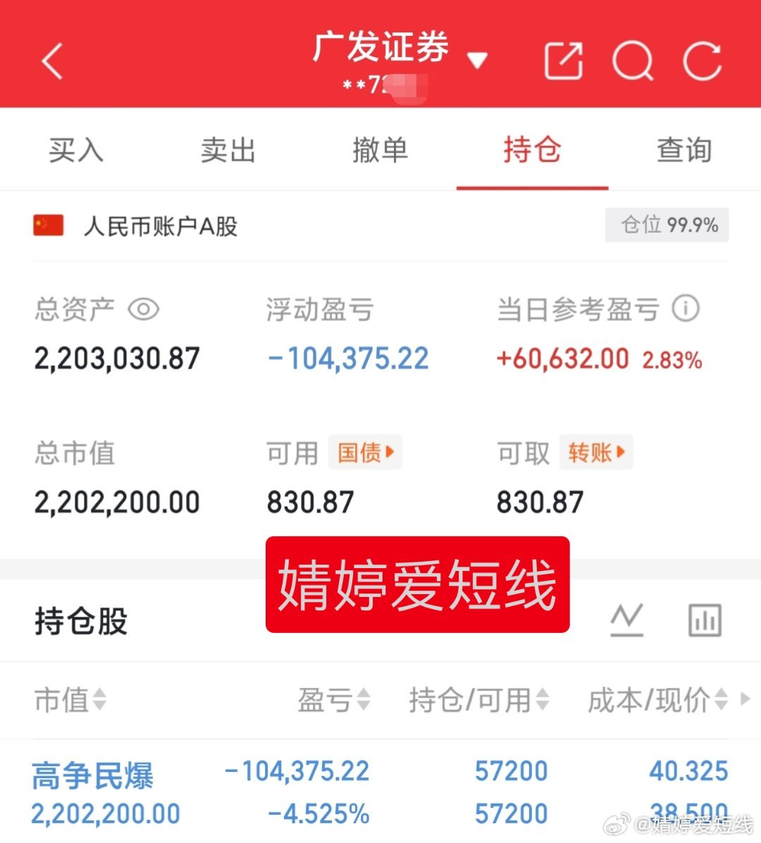 昨晚婧婷选了几个新主线潜力最大的龙头和关联最深的票但今天没给机会开盘都秒板了。高争今天也是如期反抽,别的没机会就等着吧。30万本金实盘记录(第377天)目前资金:2203030.87元今日持有:高争民爆 sz002827[股票]我会把每天实盘记录下来,我相信实盘肯定一直往前冲,希望各位股友支持婧婷!点赞富一生,评论888票票长虹!特别声明:这只是我个人的操作记录,不作为任何投资建议,更不是劝你们跟买!股市有风险,投资需谨慎!!!🙏🙏🙏股票上证指数a股炒股技巧