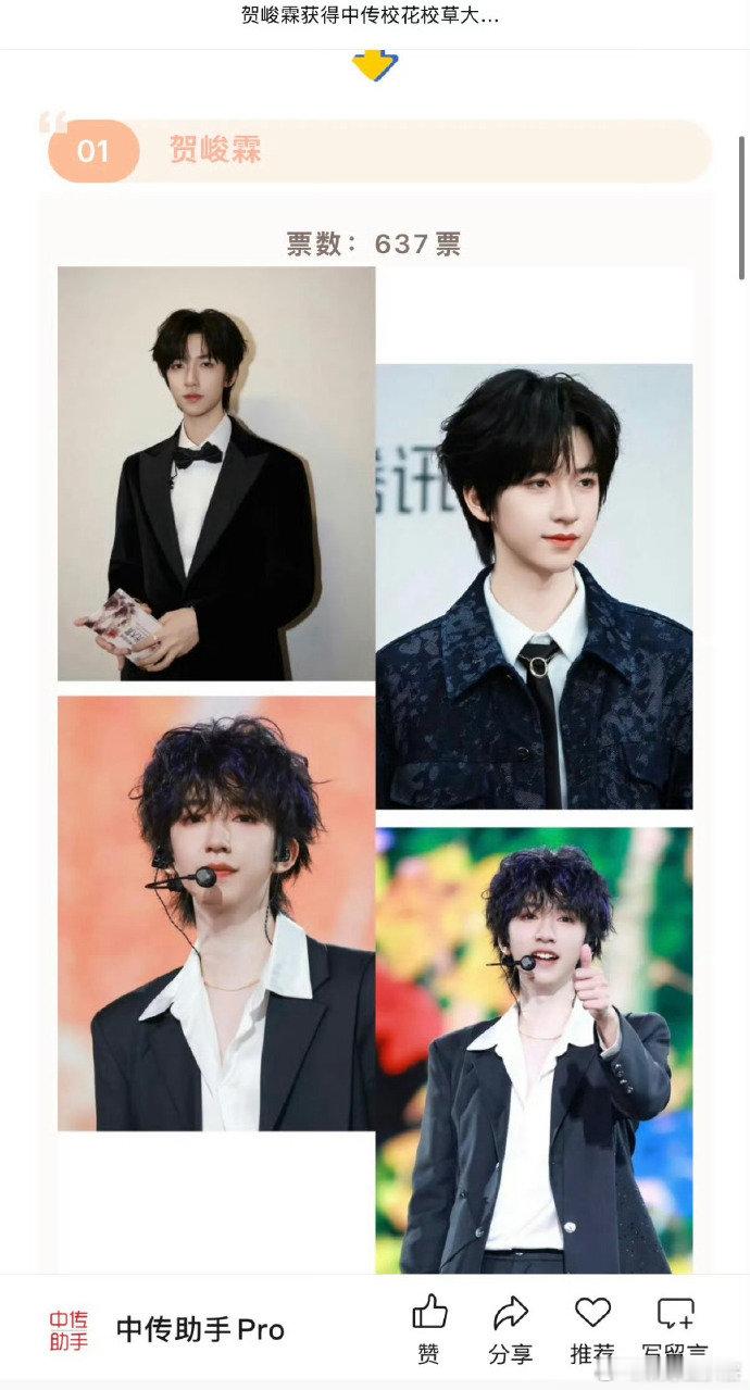 贺峻霖获中传校花校草大赛第一名 中传校园里的颜值top,镜头前的耀眼少年,这个冠军头衔他值得! 贺峻霖中传校草第一名