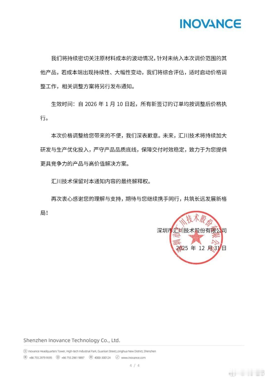 由于原材料涨价的缘故,汇川电机宣布全系列提价10%~12%。按去年他们的合作用户名单来看,理想、小米、小鹏、广汽、吉利、奇瑞、长安、长城、上汽、东风等等车企会受多少影响呢如果没记错的话,汇川电机去年上半年在商用车领域的电机电控市占率也有三成以上来着…… 新能源汽车汽车资讯