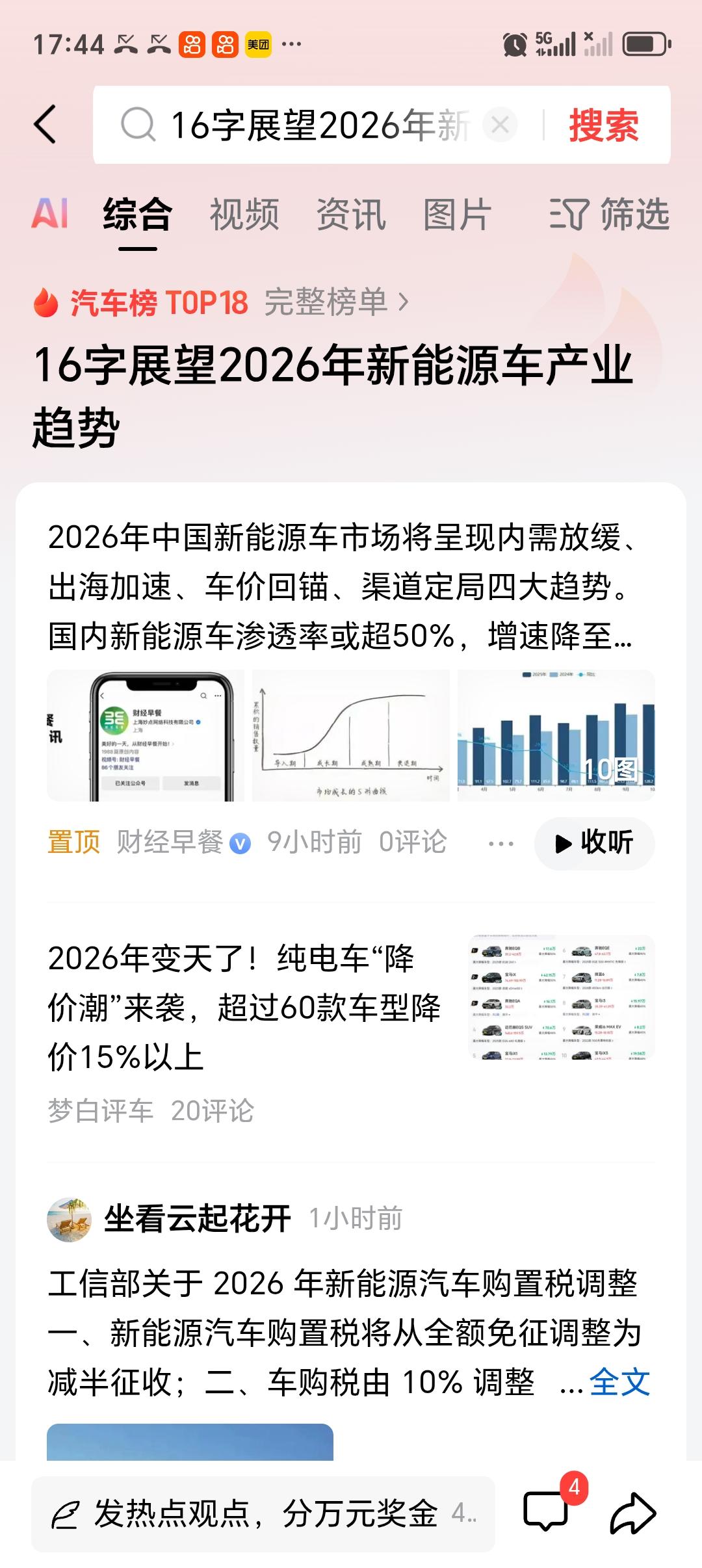 16字展望2026年新能源车产业趋势 2026年新能源车产业,我觉得可以用“国内微增、海外竞逐、技术迭代、格局重塑”来展望。 国内市场,增量空间见顶,将进入低增速成熟期,2023 - 2024年增速虽高,但之后会长期微增。而海外市场,2025年前11个月新能源汽车出口同比大增102.9%,各车企会加大竞逐力度。技术上,前沿技术会密集落地。这一系列变化也会让比亚迪、吉利等车企的市场格局重新洗牌,竞争会更激烈。