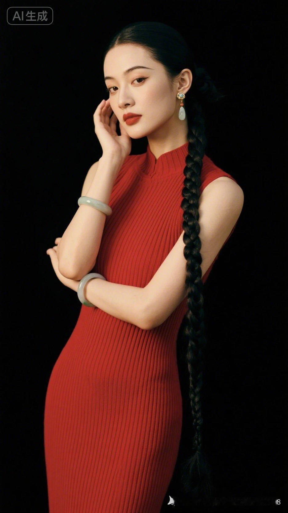 优雅红裙,复古发型,尽显时尚魅力!🌹✨