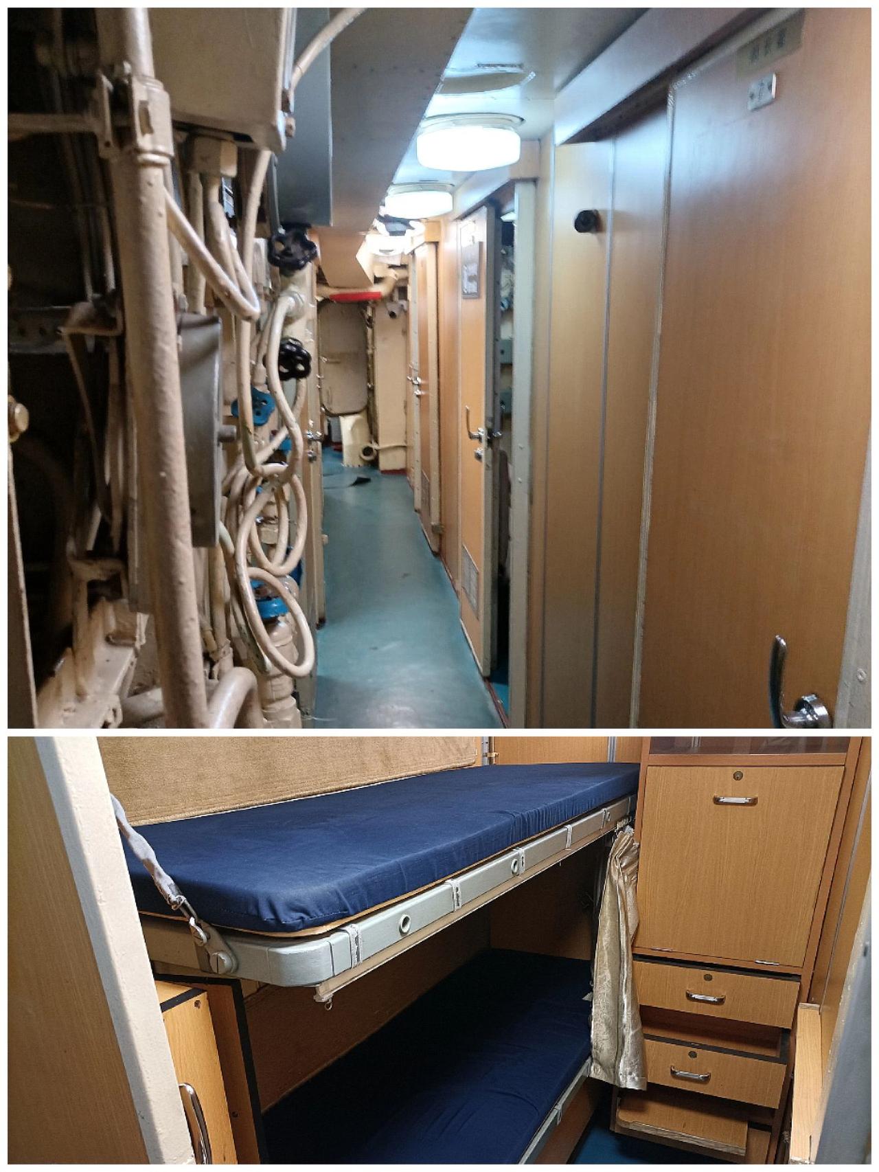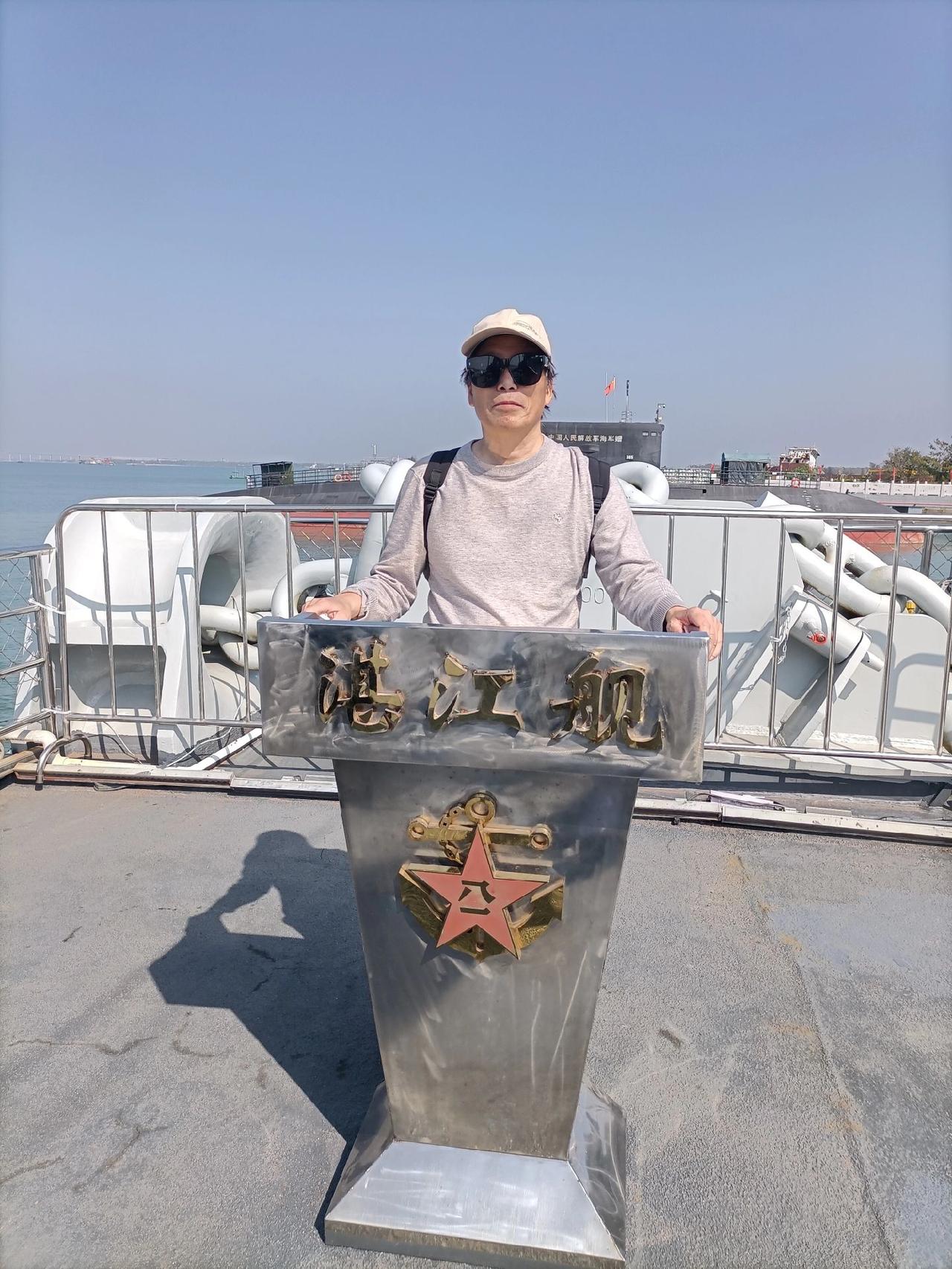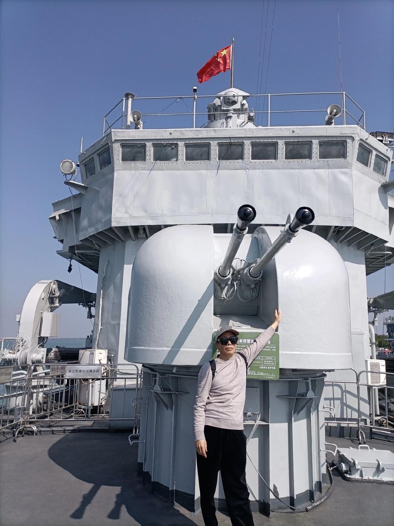 开潜艇(图5),上军舰,踌躇满志,在湛江军博园海上装备区,湛江舰上再体验一把军人之姿(图8)。 即将进入这艘潜艇,和进入后满机器管道的内部通道(图1),潜艇指挥塔展雄风(图2),潜艇内部狭窄的宿舍通道和寝室(图3),连接潜艇各舱的圆门和上下潜艇内部的楼梯(图4)。 开始踏上这艘湛江舰和舰上的尾炮(图6),舰上的舰首炮(图7),舰首炮左右的近防炮,舰中部的导弹以及舰甲板下的士兵寝室(图9)。