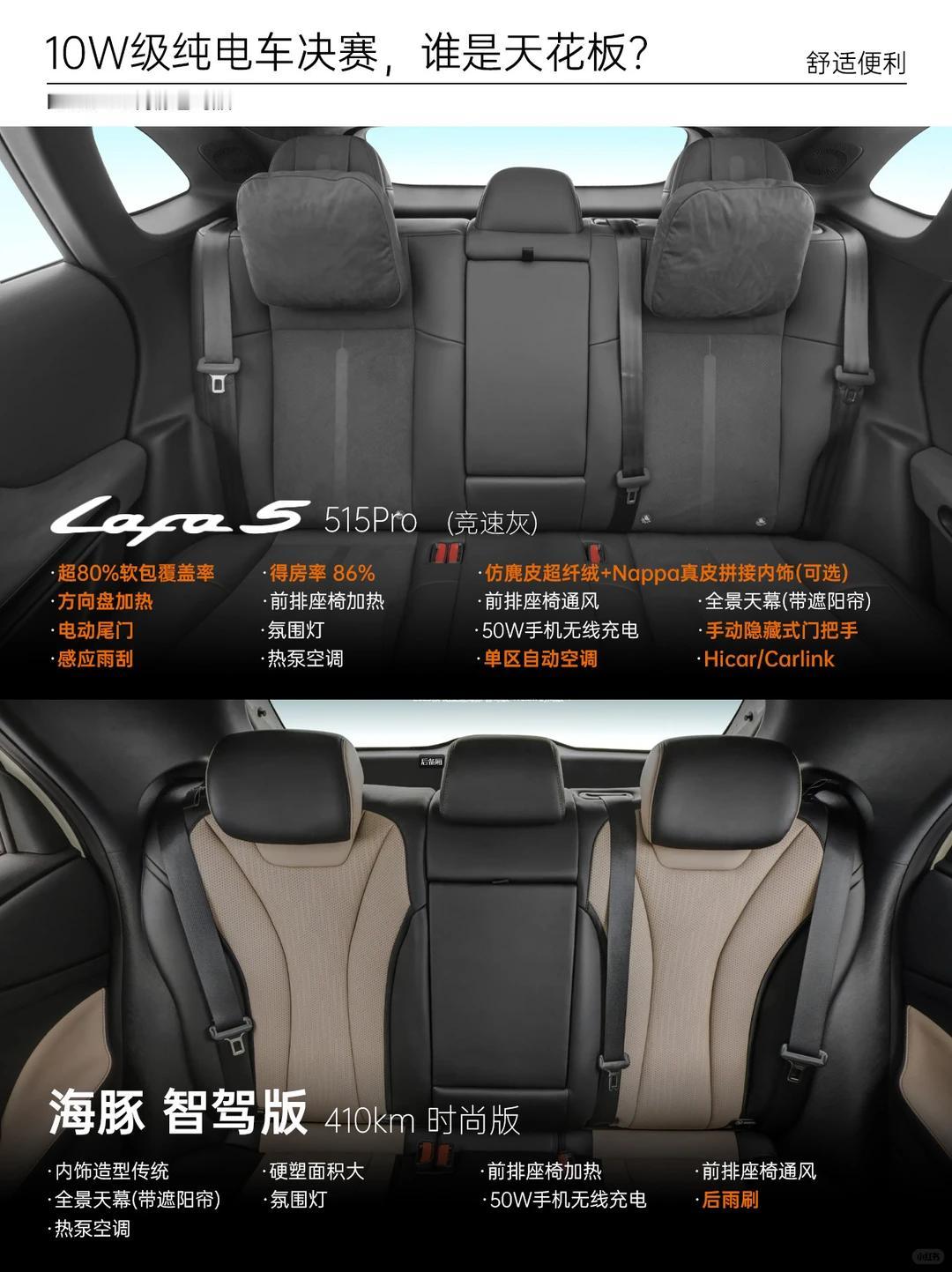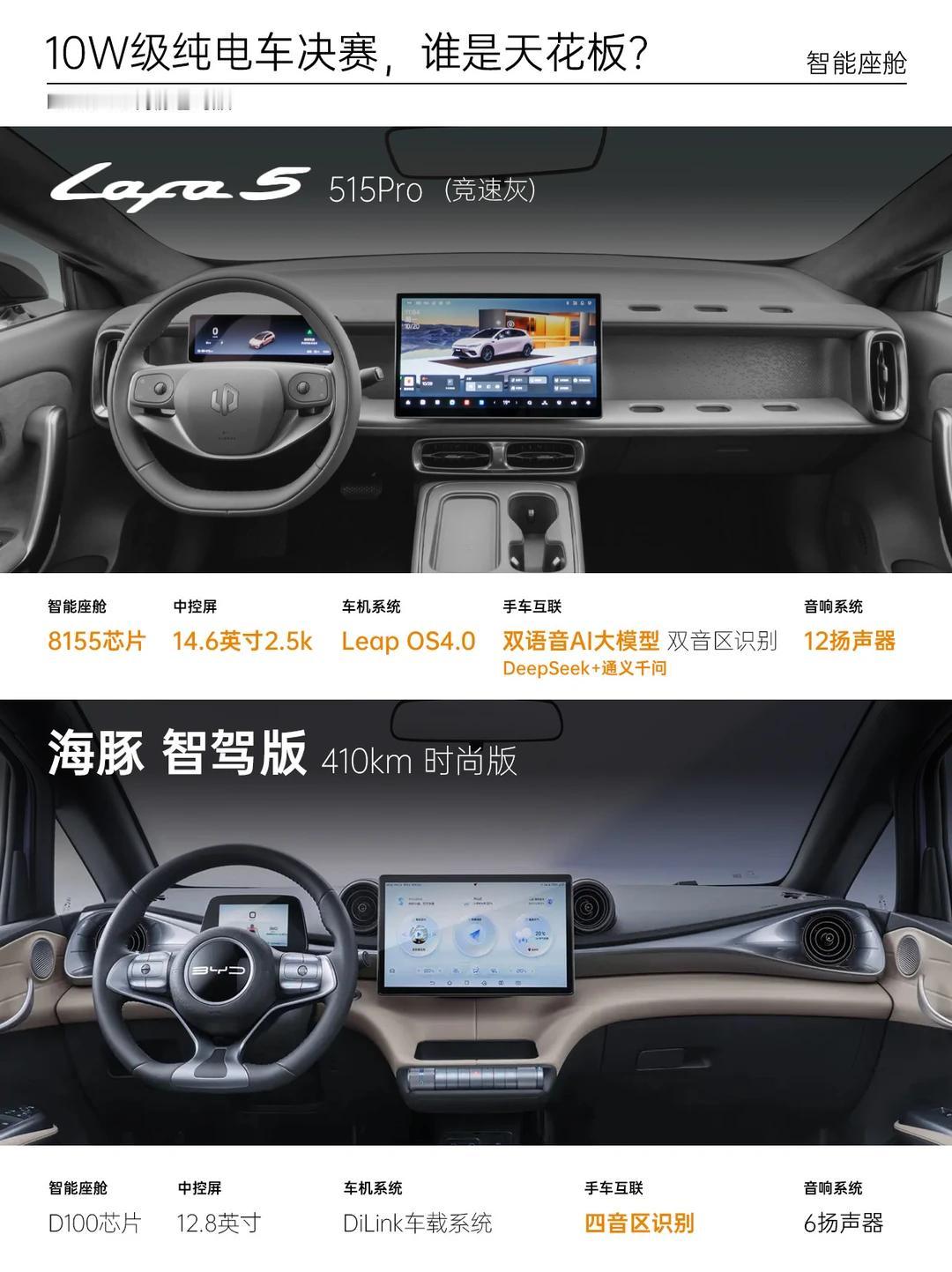 手持10万元预算,你是选择零跑Lafa5还是比亚迪海豚呢? 选车是学问,尤其在车型选择丰富的当下,如何选车可是难倒了不少朋友。比如,假设我们预算在10万级,面对热度都不低的零跑Lafa5和比亚迪海豚,应该怎么做出选择呢? 首先,现在许多消费者,尤其是年轻人,可是“颜值派”,车辆的外观设计对他们而言,是第一要素。Lafa5的设计就挺出彩,1880mm宽体车身配合灵感源自赛道的曲面腰线,以及宽厚饱满的车尾设计,低趴稳健的轿跑姿态一步到位,同时它全系标配无边框车门和纯平侧窗设计,侧面视觉整体感强,令人印象深刻。 海豚的颜值也不低,整车线条流畅舒展,大灯组造型锐利。但论运动感和个性化,海豚还是要稍逊一些。这还没完,上市35天累计热销超1.7万台的Lafa5,还用上了8295P旗舰座舱芯片,配合Leapmotor OS 4.0 Plus车机系统,可以带来沉浸式的视觉交互体验。比亚迪海豚搭载的则是D100芯片,不管是算力还是交互都较为基础,更适合追求稳定的小伙伴。 另外,零跑现在还给到至高8000元超级购置税礼等政策支持,更有2025年全年交付量近60万辆,12月交付超6万台的亮眼市场成绩为Lafa5做背书,Lafa5的确更值得考虑。