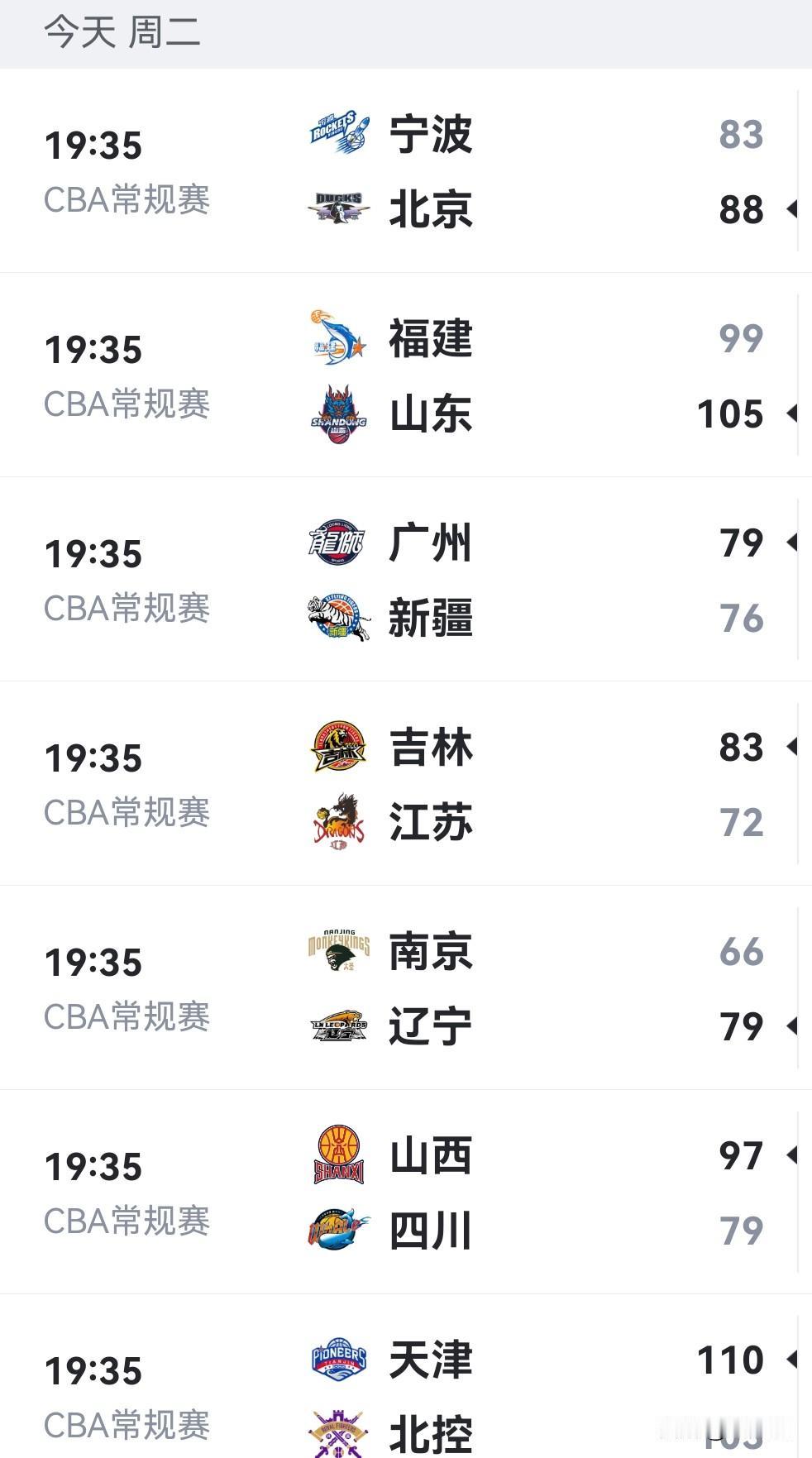 CBA常规赛第11轮战报:北京险胜宁波 辽宁轻取同曦 山东加时力克福建 北京时间1月6日,CBA常规赛第11轮多场对决精彩落幕,北京北汽、辽宁本钢、山东高速等队纷纷过关,其中山东历经加时苦战斩获四连胜,北京延续对宁波的交锋全胜纪录,辽宁则凭借末节发力轻松取胜,积分榜头部格局持续胶着。 北京北汽88-83宁波町渥:末节决胜延续全胜 这场拉锯战全程攻防缠斗,首节宁波外援杰克逊替补爆发独得8分,率队以25-22抢占领先;次节北京加强内线冲击,周琦持续造杀伤,杰曼连取4分引领反击,双方交替领先至半场45-45平。第三节北京多次尝试拉开分差,但宁波靠辛普森串联和杰克逊三分紧咬,三节战罢仅落后2分。末节宁波一度反超,关键时刻雷蒙命中关键三分,周琦统治禁区抢下关键篮板并造犯规,双方战至83平后,杰曼高难度抛投打破僵局,陈盈骏与翟晓川罚球锁定胜局。数据方面,杰曼贡献25分7篮板7助攻,周琦8中7砍下18分6篮板2盖帽,宁波辛普森20分4篮板8助攻、杰克逊23分难救主,北京以9胜2负追平联赛最佳战绩。 辽宁本钢79-66南京同曦:双核发力斩获两连胜 辽宁客场对阵同曦的比赛中,租借至辽宁的王岚嵚面对旧主表现高光,首节就打成“3+1”带领球队轰出15-2梦幻开局,首节战罢以24-11建立两位数优势。次节辽宁命中率骤降、失误增多,郭昊文扛起进攻大旗单节独得10分,率队将分差缩小至5分,半场比分34-29。易边再战,辽宁开局打出9-0攻击波,随后郭昊文用2+1回应并串联队友,同曦一度追至仅差1分;关键时刻辽宁凭借老道经验稳住阵脚,三节战罢54-53微弱领先。末节威尔斯与王岚嵚联手接管比赛,合力掀起13-5攻击波,同曦外线19投仅4中且失误频发,最终无力回天。此役威尔斯拿下24分5助攻4抢断,王岚嵚贡献21分7篮板,同曦郭昊文空砍23分6篮板8助攻的准三双数据。 山东高速105-99福建晋江文旅(加时):四连胜来之不易 山东客场挑战福建的比赛跌宕起伏,首节陶汉林篮下连得7分帮助山东开局领先,但球队连续失误且三分8投0中,首节结束19-21落后,福建球员黎伊扬因无球犯规被直接驱逐。次节陈林坚投中山东首记三分,克里斯打成2+1,山东以50-43领先7分进入半场。第三节克里斯身背4犯离场,山东进攻不畅仅得18分,福建趁机追至66-68。第四节福建开局连得11分领先9分,谢智杰连得8分缩小分差,常规时间最后时刻双方交替反超,最终91平进入加时。加时赛珀塞尔独得8分,陶汉林抢下关键篮板并命中两分,山东凭借稳健发挥惊险取胜,豪取四连胜,珀塞尔贡献22分,陶汉林成为内线支柱。 其他场次赛果 - 山西汾酒股份97-79四川金强:山西六人得分上双,诺威尔18分、原帅与迪亚洛各17分,第三节打出21-0冲击波拉开分差,送给四川11连败。 - 天津先行者110-103北京北控:天津凭借整体攻势力克北控,延续近期良好状态。 - 吉林长白山83-72江苏肯帝亚:吉林防守端压制对手,稳稳拿下比赛胜利。 本轮过后,北京、上海、广厦、广东均以9胜2负领跑积分榜,山东凭借四连胜升至第11位,辽宁战绩提升至6胜5负逐渐摆脱低迷,四川则仍在11连败的困境中挣扎。
