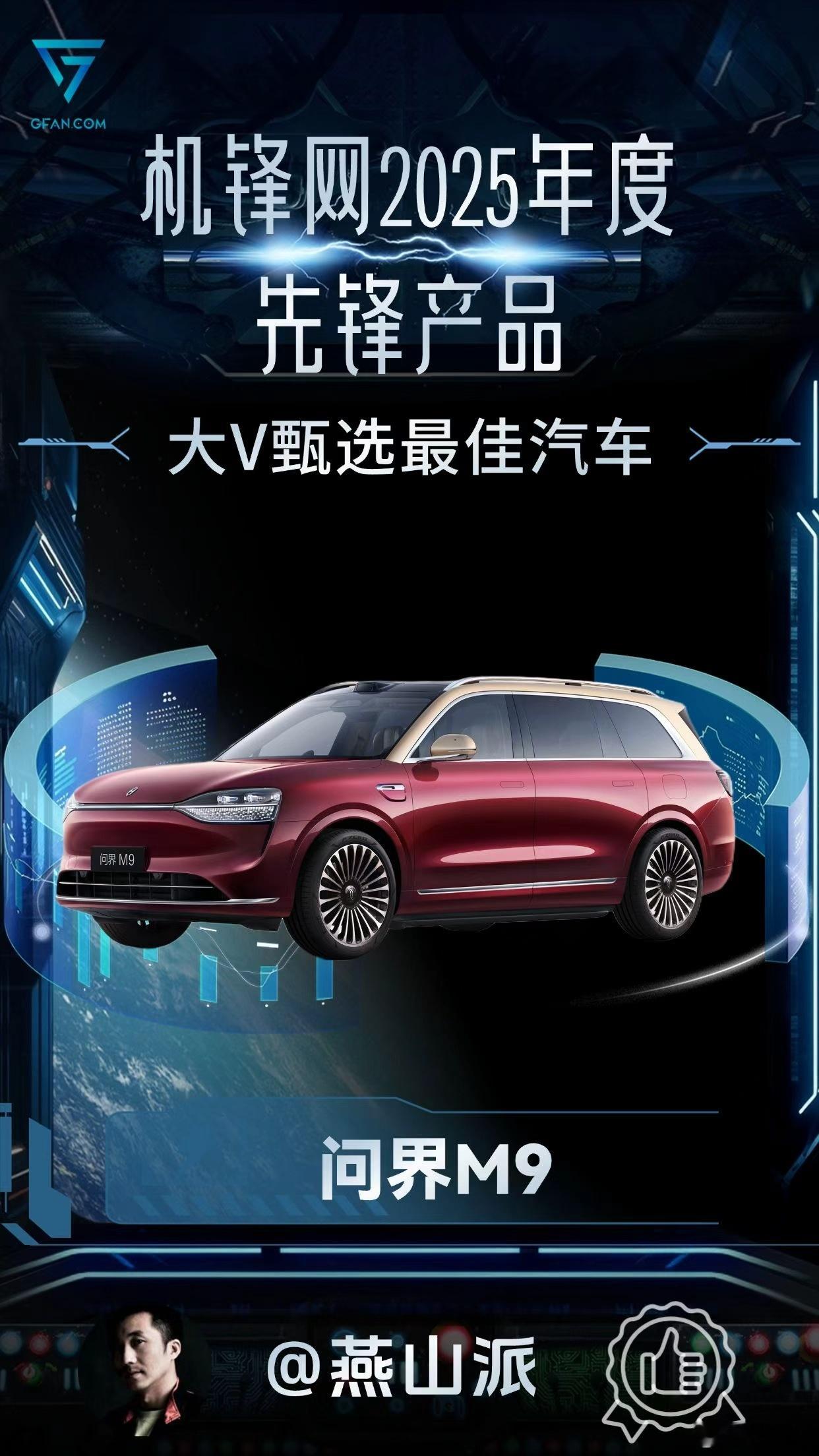 大V甄选最佳汽车必须是问界M9!机锋网2025年度评选 100万内最好的SUV实至名归,不仅是公路坦克更是智能移动行宫。全系标配华为乾崑 ADS 4智驾,4颗激光雷达加上全向感知系统,不管泊车还是通勤,都能做到全场景无忧。鸿蒙座舱多屏交互流畅丝滑,32英寸投影巨幕打造移动影院。增程版综合续航超过1400km,尊四座零重力座椅+车载冰箱,这豪华感还不拉满吗?从智能到舒适,每一处都戳中高端用户需求,旗舰SUV天花板非它莫属!
