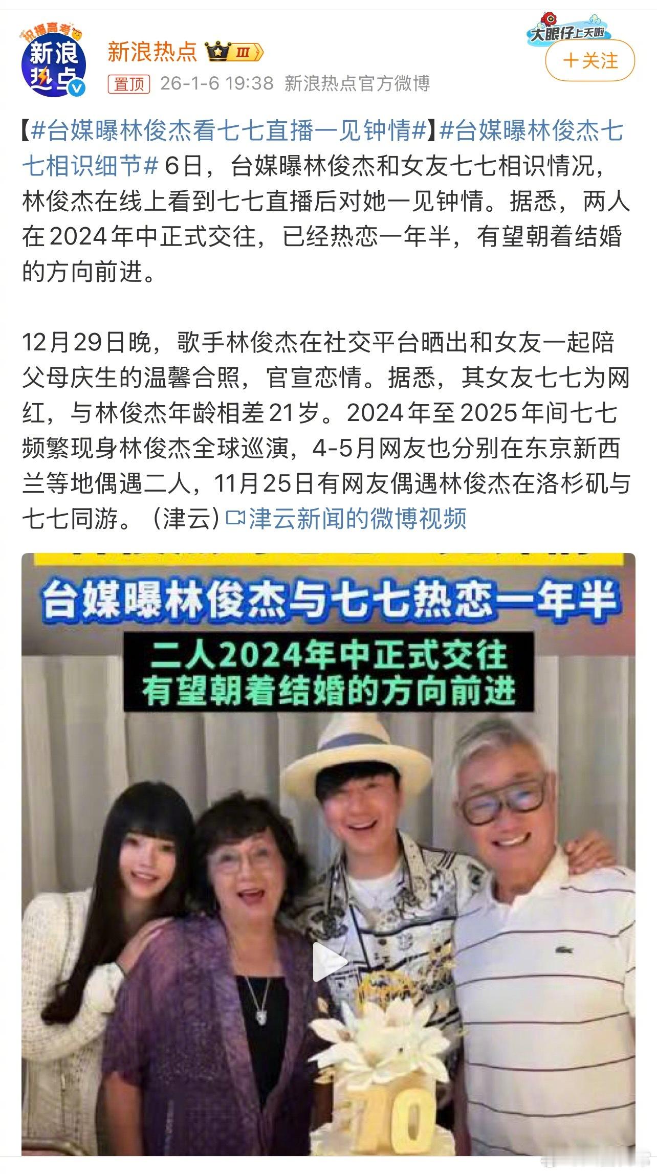 林俊杰方否认看七七直播一见钟情,表示林俊杰并没有爱看网红直播,与七七是通过朋友认识的,与直播完全无关台媒曝林俊杰看七七直播一见钟情