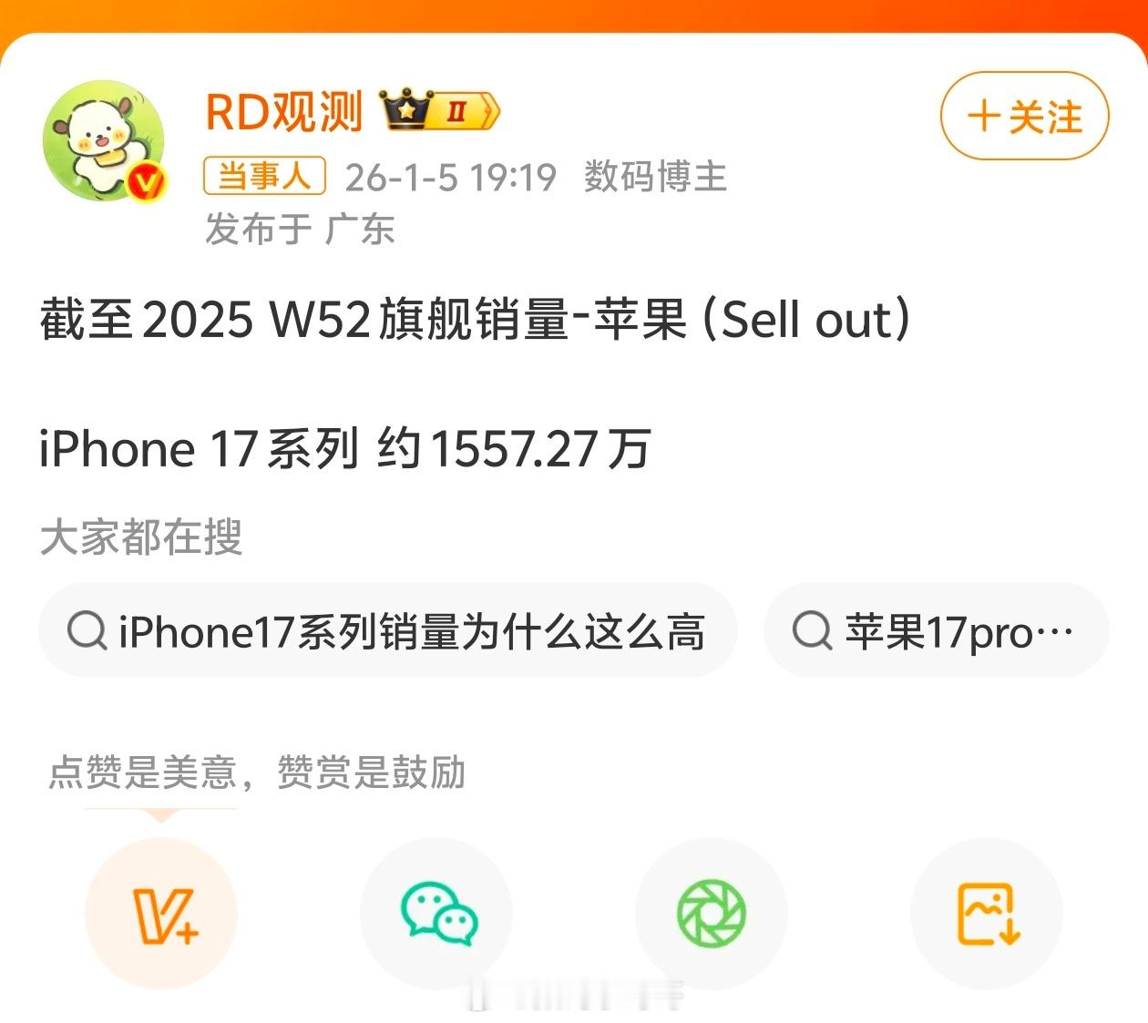 iPhone17最新销量曝光 销量居然突破1500万部了?这也太顶了吧!不得不说,苹果今年的势头是真的猛👍