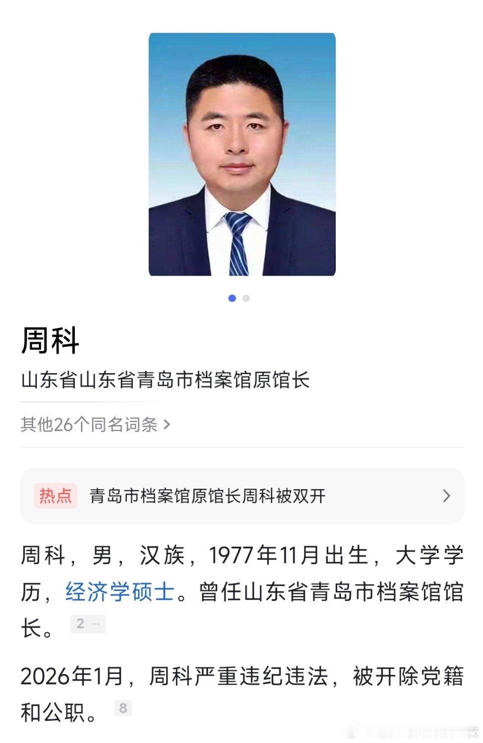从莱西市委书记调任到青岛市档案馆馆长后被查!周科严重违纪违法被开除党籍和公职!