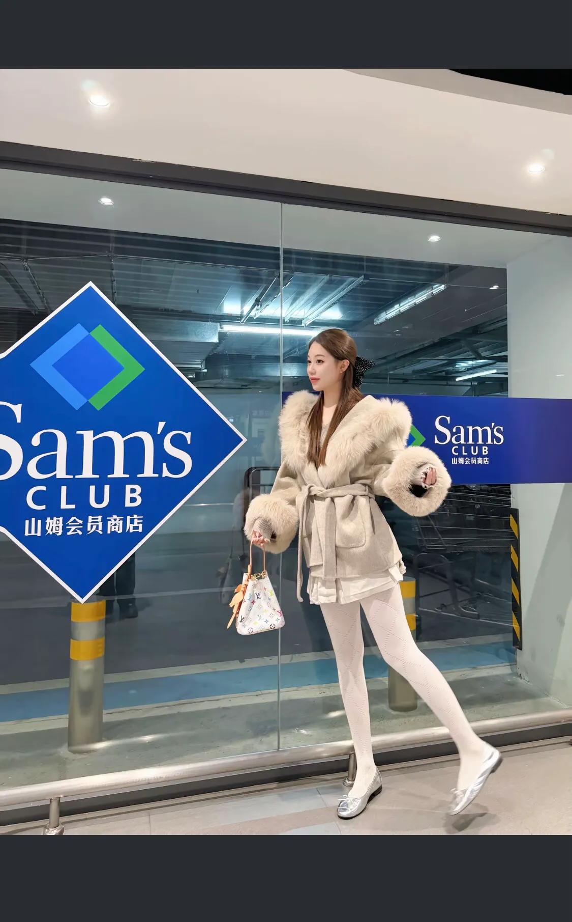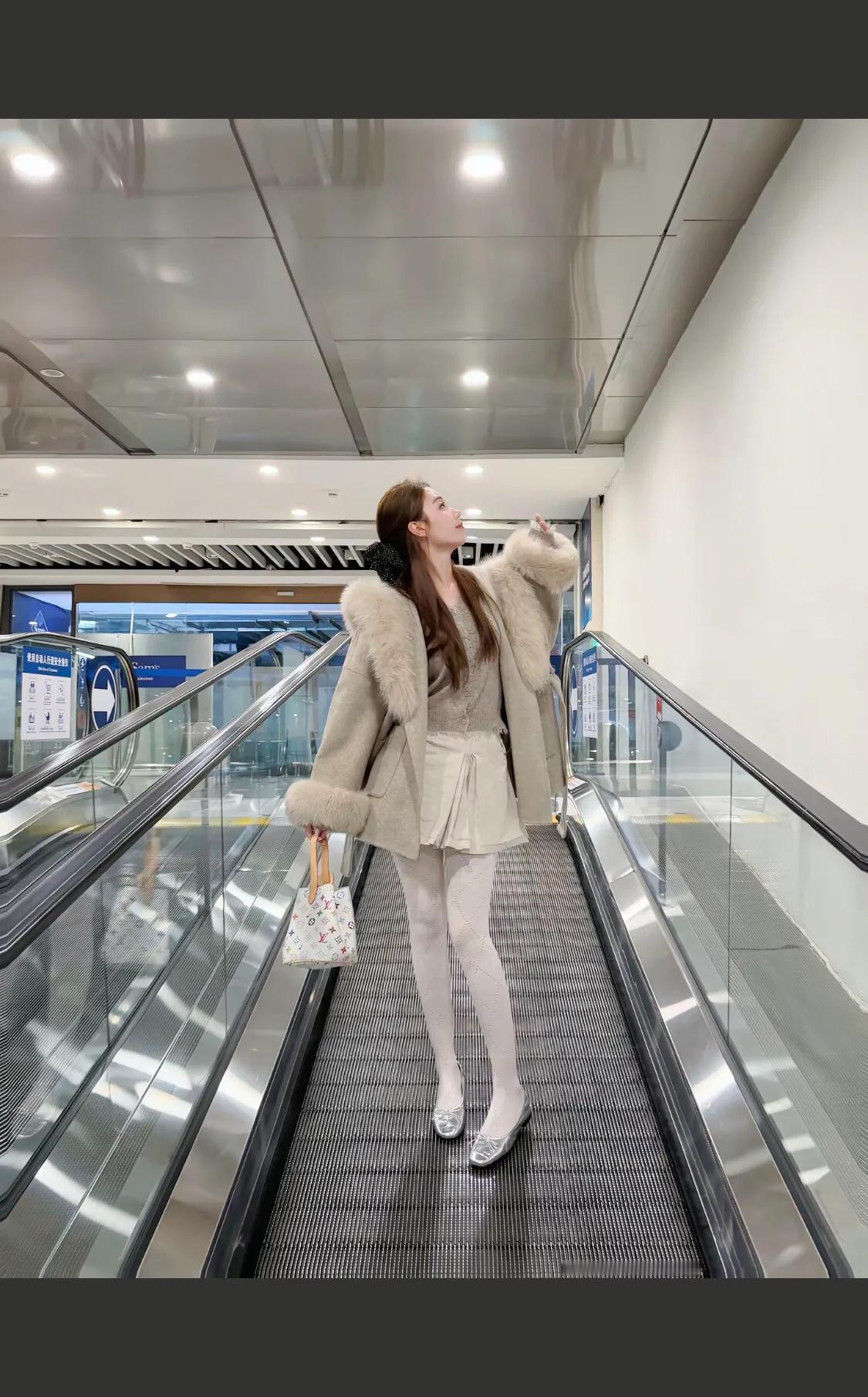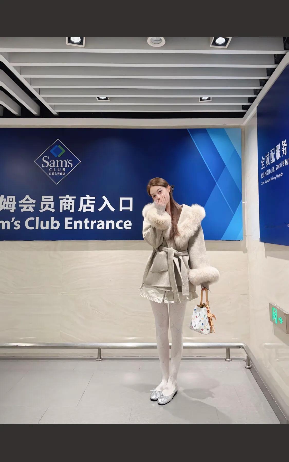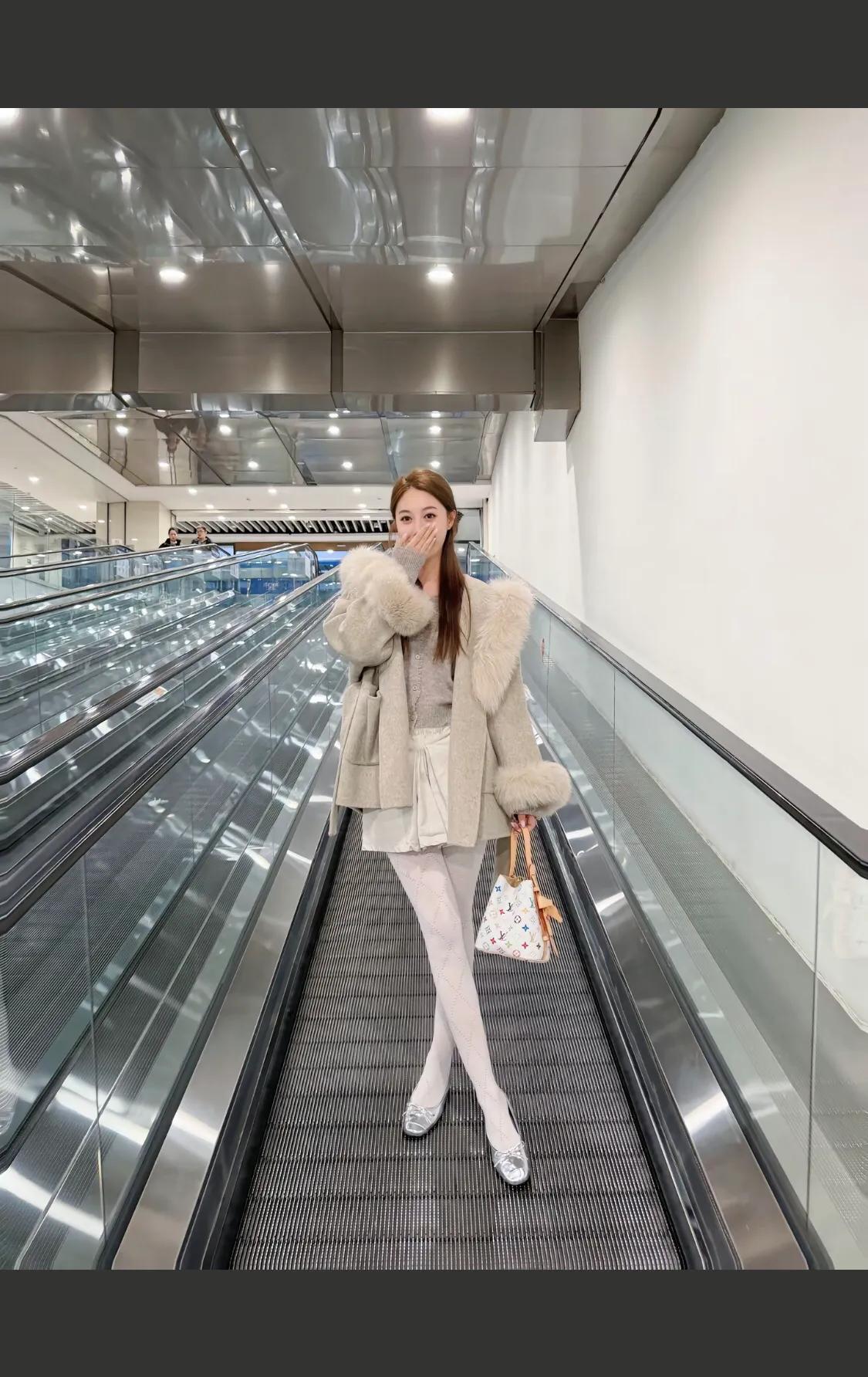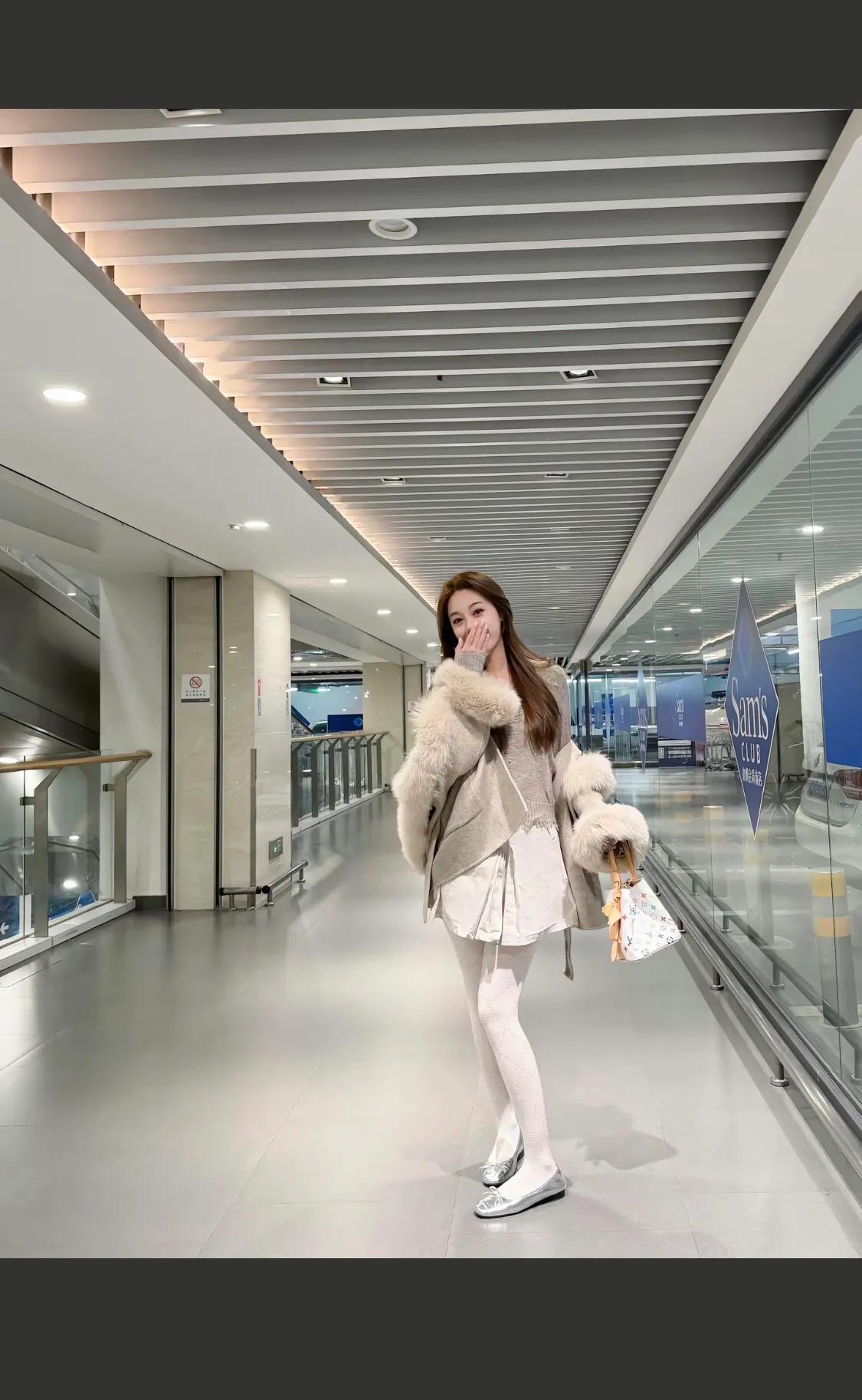 毛茸茸外套搭配白色袜,温暖又时尚!