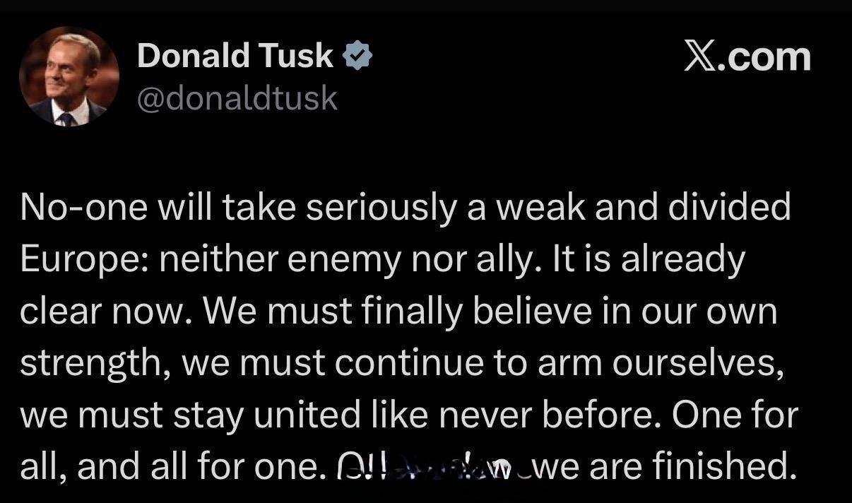 在格陵兰危机发展之际,波兰总理图斯克呼吁欧盟团结,声称一个分裂而软弱的欧盟,既不会被敌人尊重,也不会被盟友尊重。