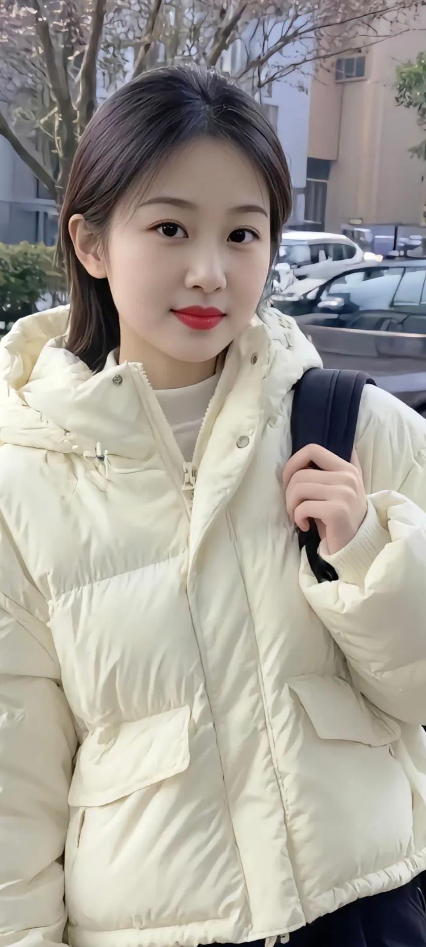 冬日穿搭指南:暖心米色羽绒服,元气满满的一天!🌞👗👟