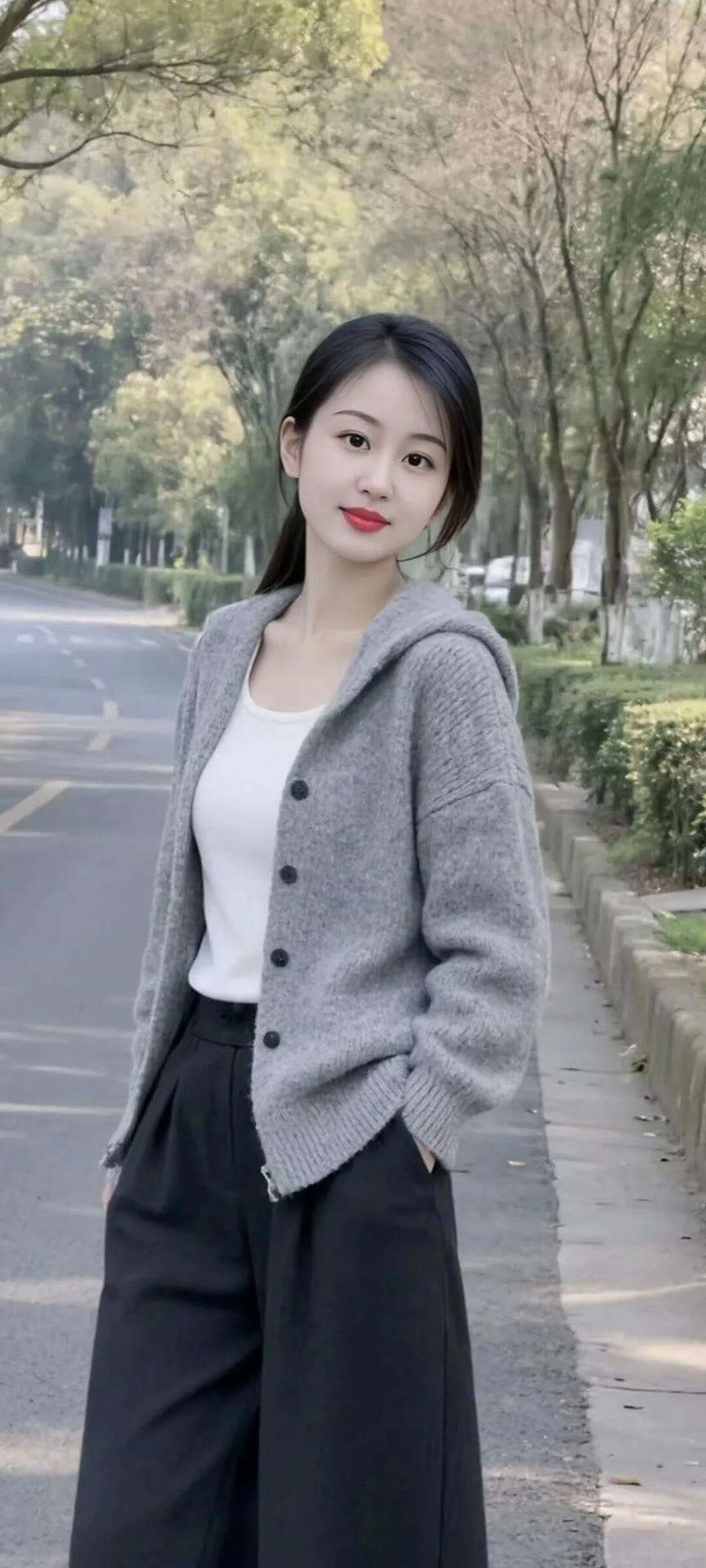 秋日穿搭指南:灰色毛衣+黑色阔腿裤,简约又时尚!🍂👗👠