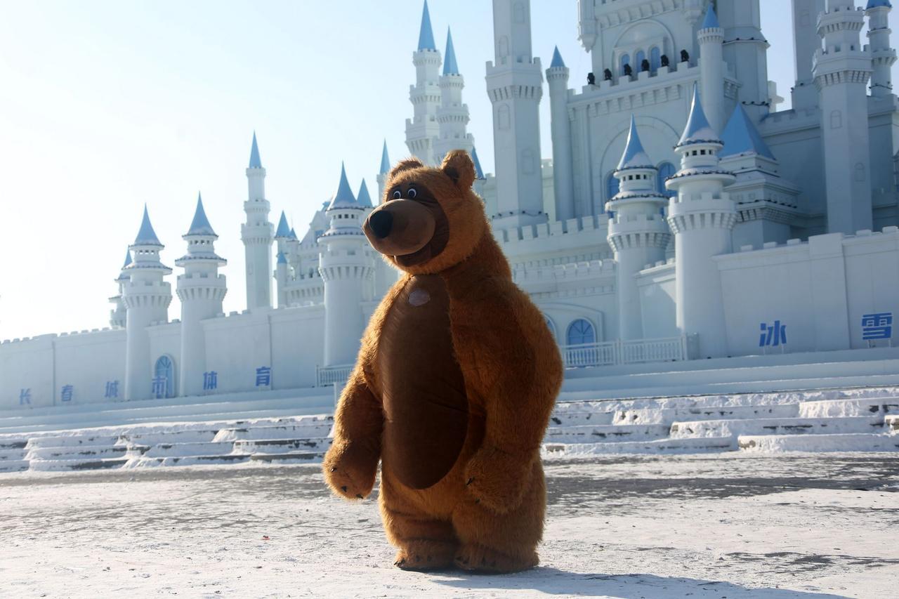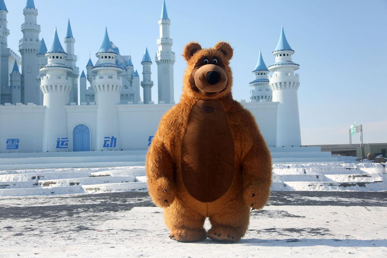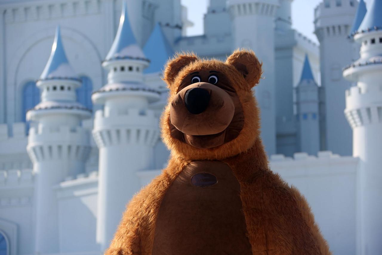 长春肆季南河冰雪乐园舞台上憨态可掬的大熊人偶