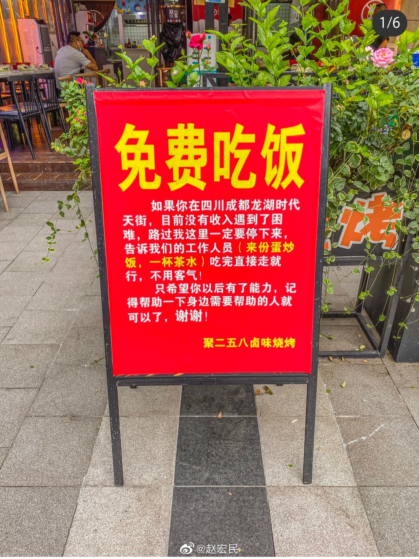 王石的妻子田朴珺面对全网的热议,静悄悄的发了一条视频,上海有一家萍萍饭店,任何人遇到困难,找到老板或服务员,他们就可以免费提供饭菜。吃完直接走人就行,店员不会追要饭钱。大概从6年前,我第一次看到类似的餐厅,就开始刻意的搜集整理这样的餐厅,并呼吁大家都去这样的餐厅消费。我一直觉得,在当今的社会,如果有人因为吃不饱而发愁,甚至是因为饥饿铤而走险酿下大错,这不只是那个人的问题,我们整个社会也应该反思,一定哪里出问题了。我很高兴看到有大量这样的餐厅存在,让真正饥饿的人可以填饱肚子,重拾继续努力生活的希望。我想说的是,如果有人找你乞讨现钱,你可以不给,但如果有人向你乞讨一顿饭,希望你不要拒绝。