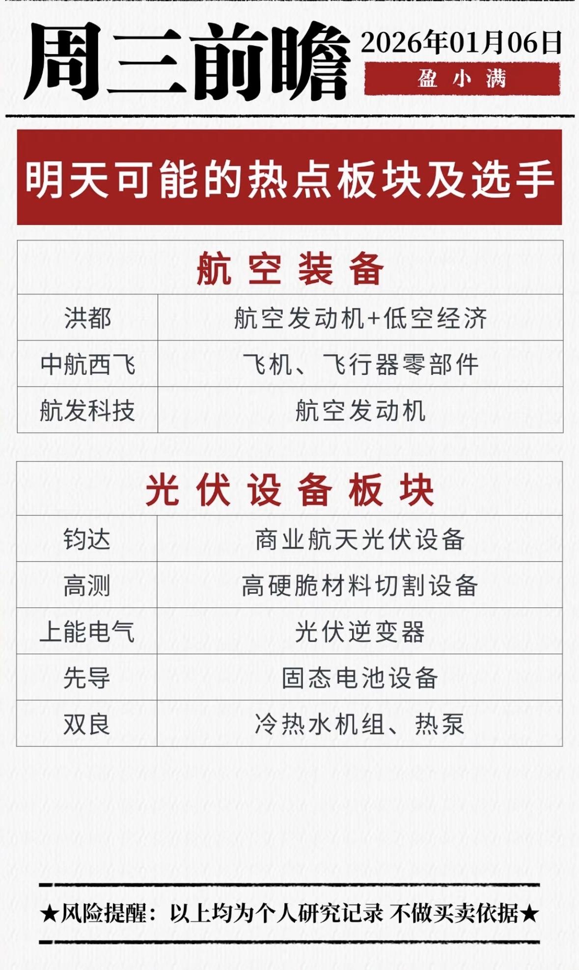 1月7日星期三盘前市场预测:热点板块及选手分析 航空装备与低空经济受关注,光伏设备及固态电池引期待。投资需谨慎,个人观点供参考。