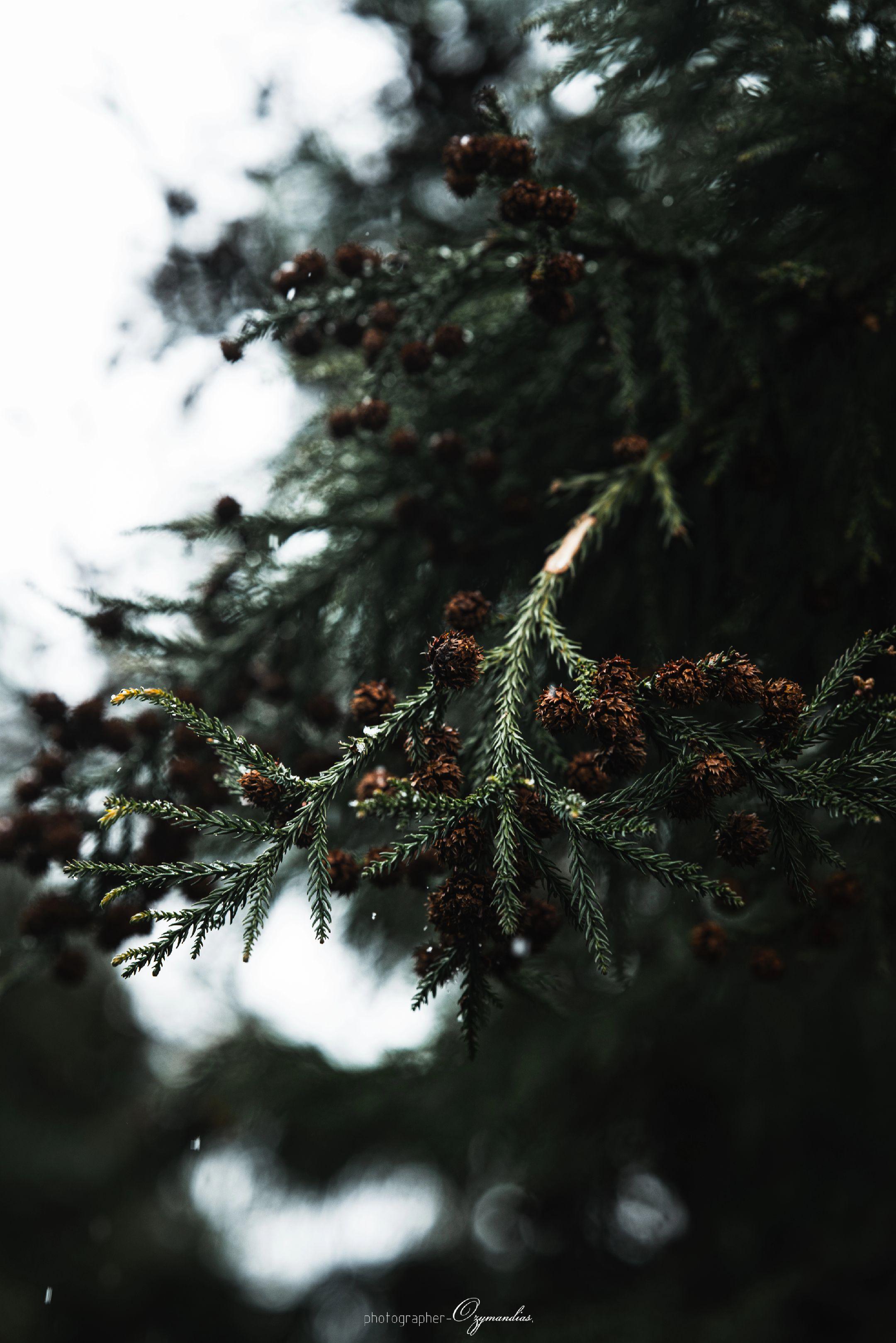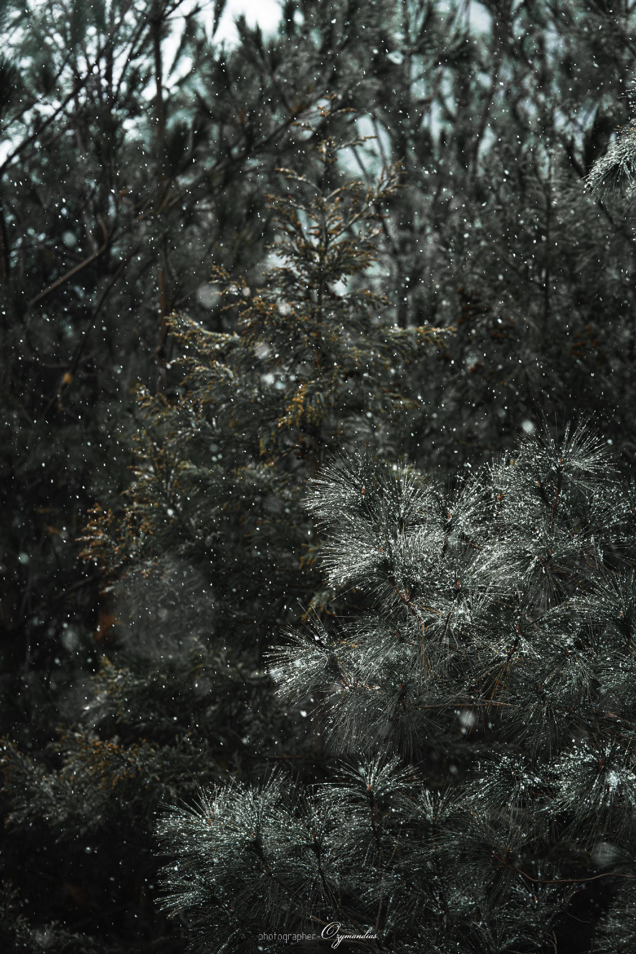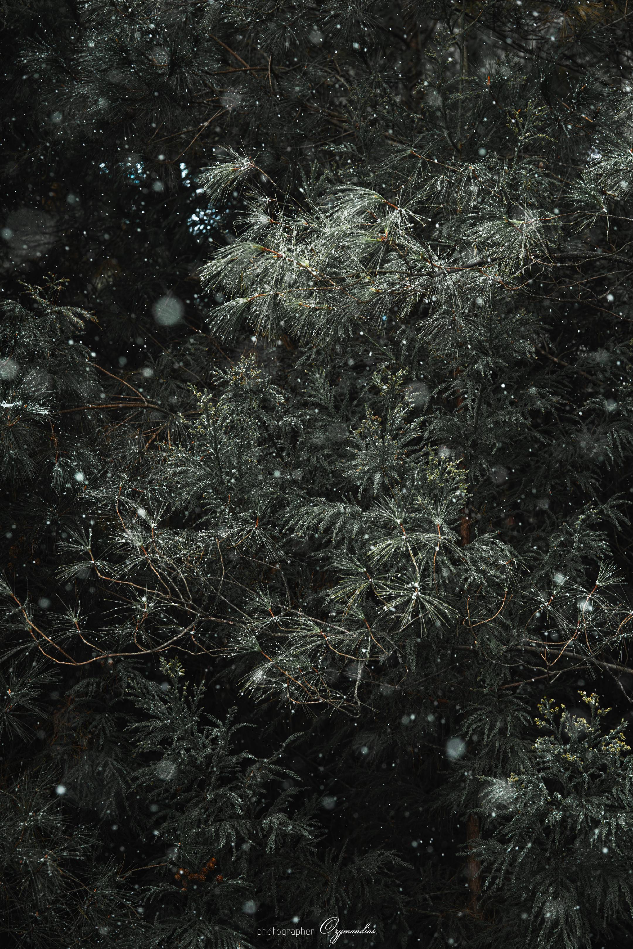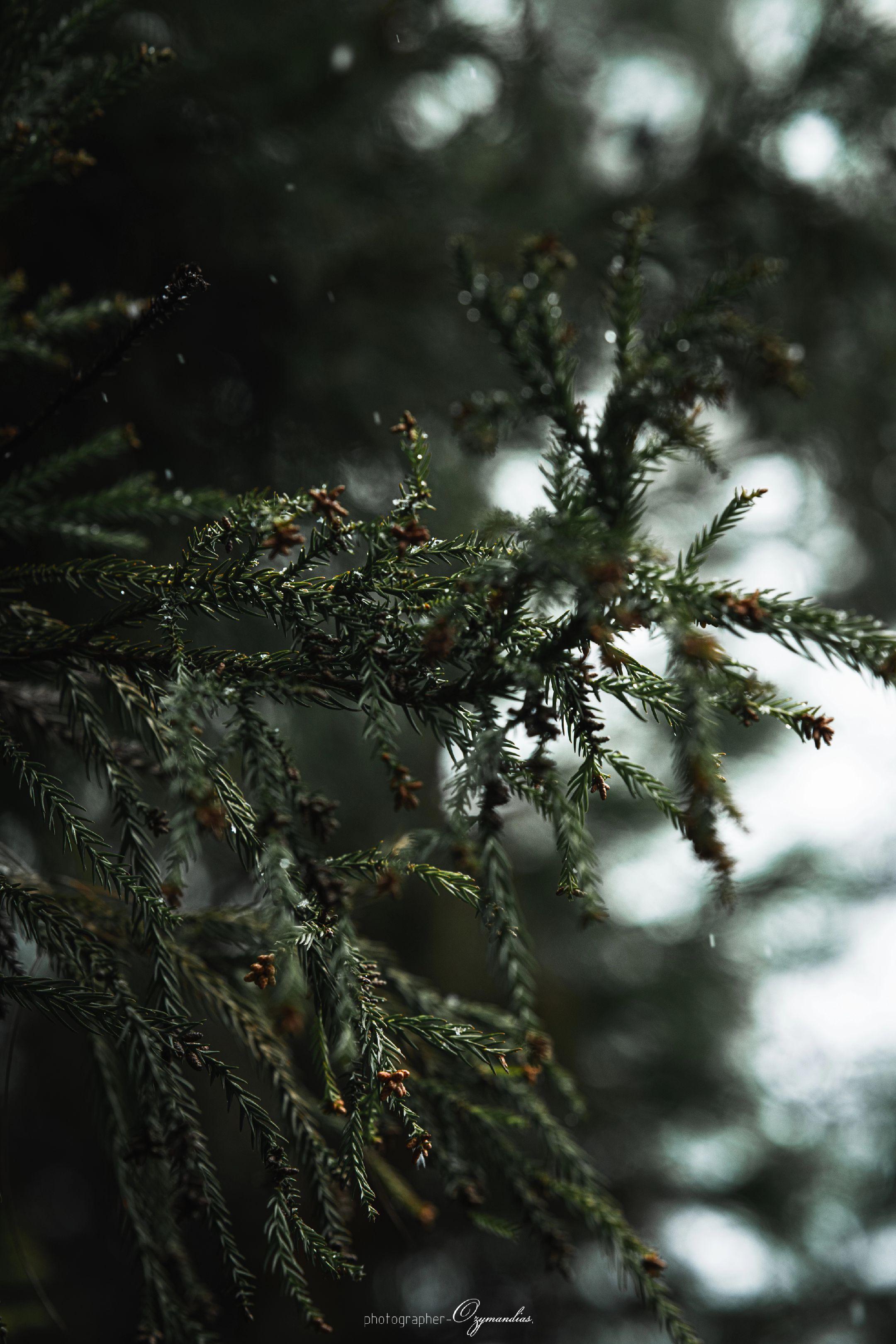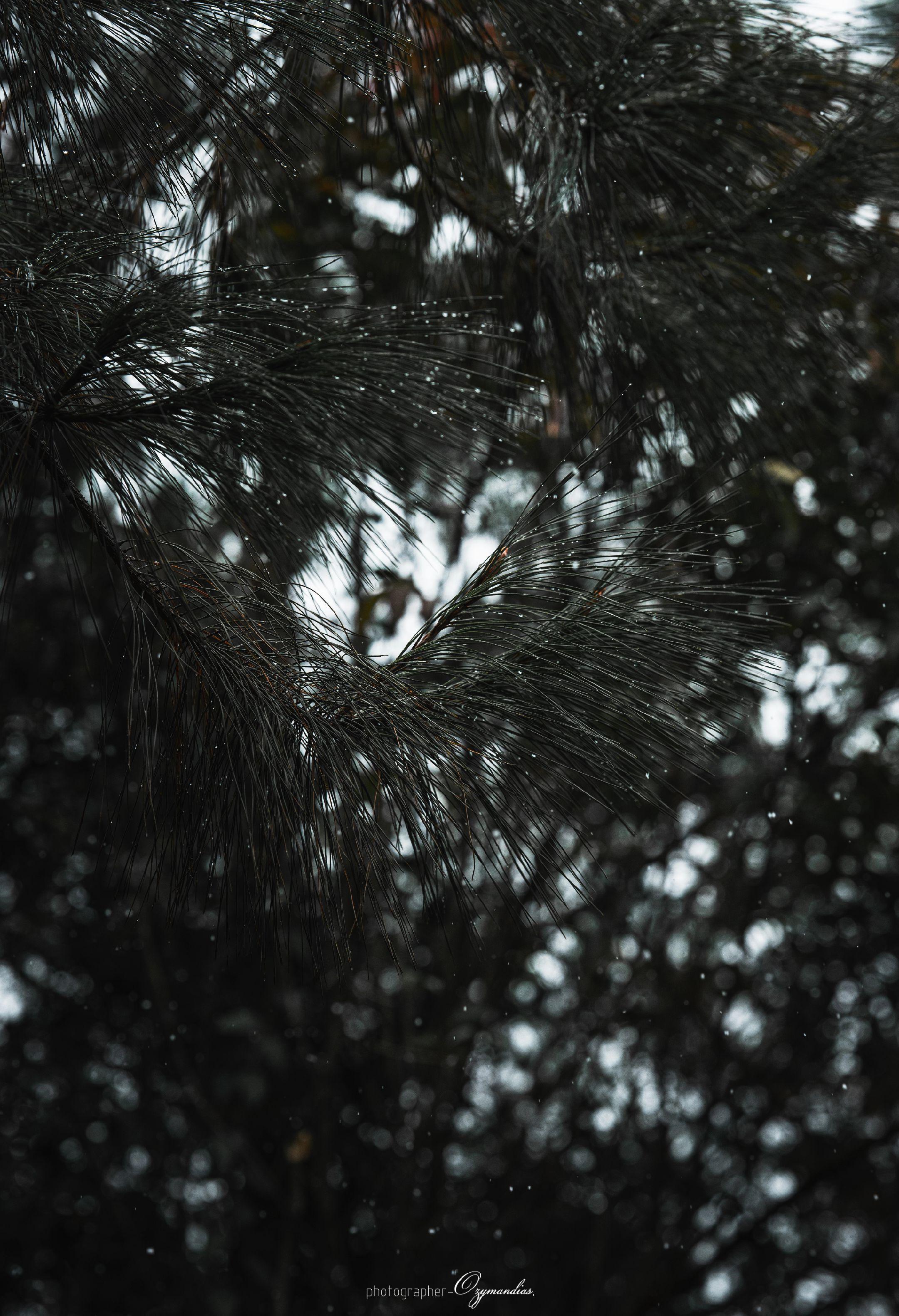 龙缸一隅·松影。龙缸的雨,轻轻落在松枝上,凝住了山野的冬意,也揉碎了一...