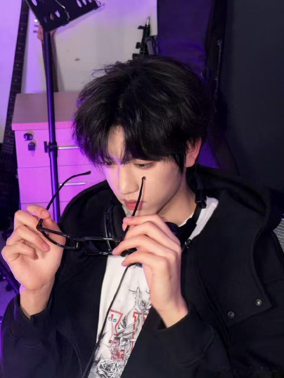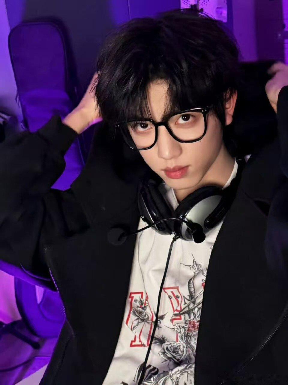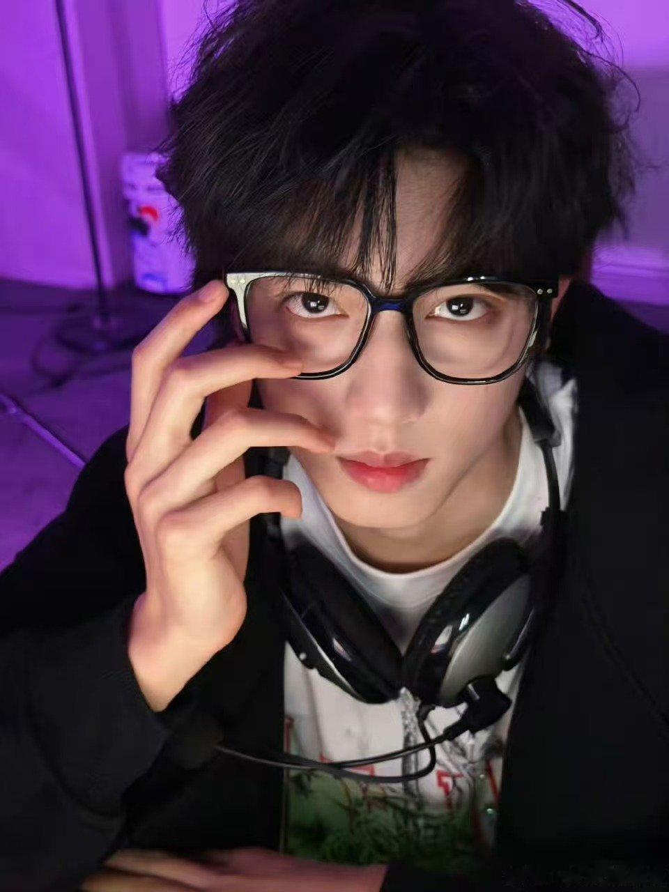 张函瑞电竞宅男 最新营业鲨疯了!all black居家服搭黑框眼镜,电竞主播既视