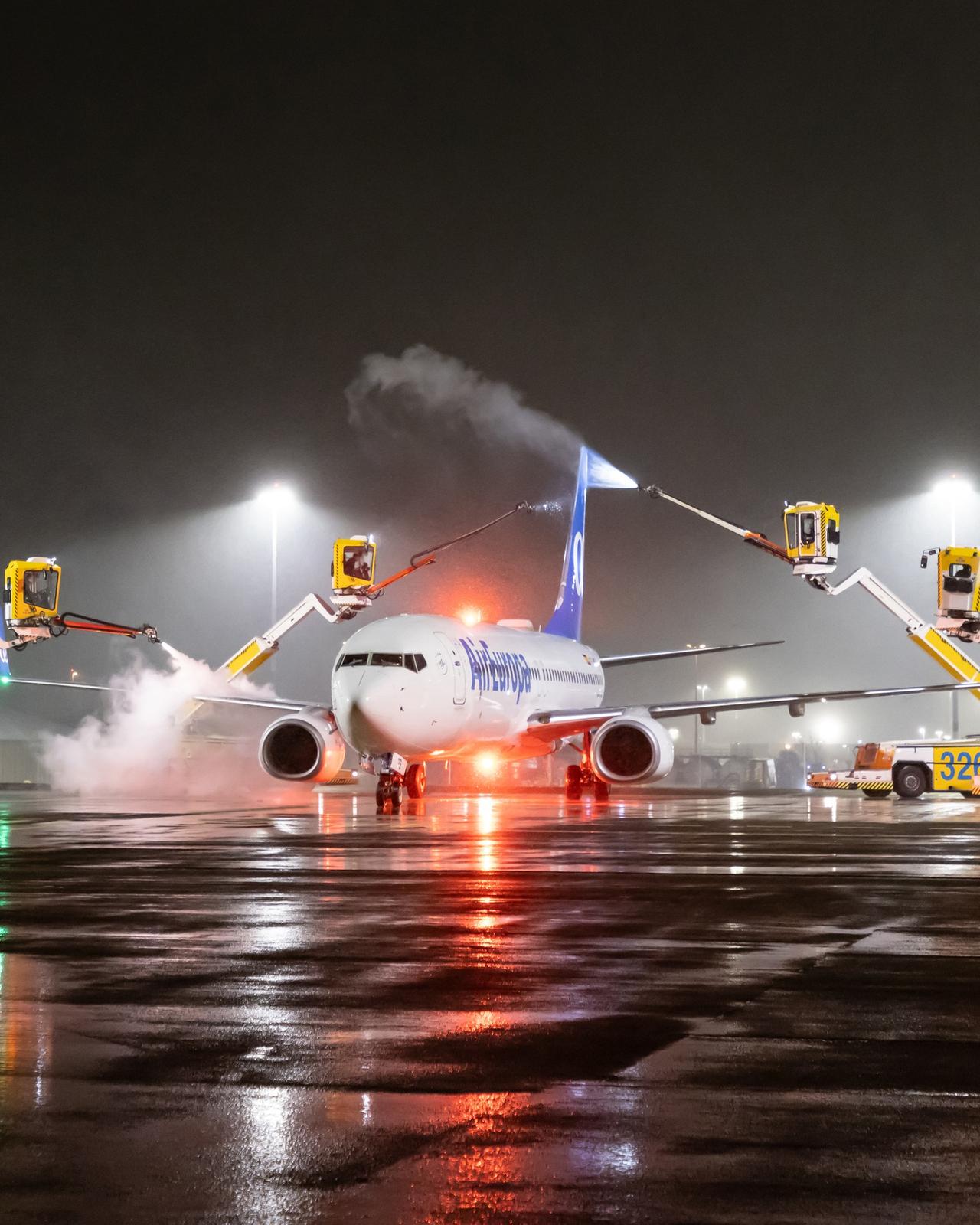 当地时间1月5日,荷兰遭遇强降雪,为避免冰雪附着影响飞机飞行安全,阿姆斯特丹史基