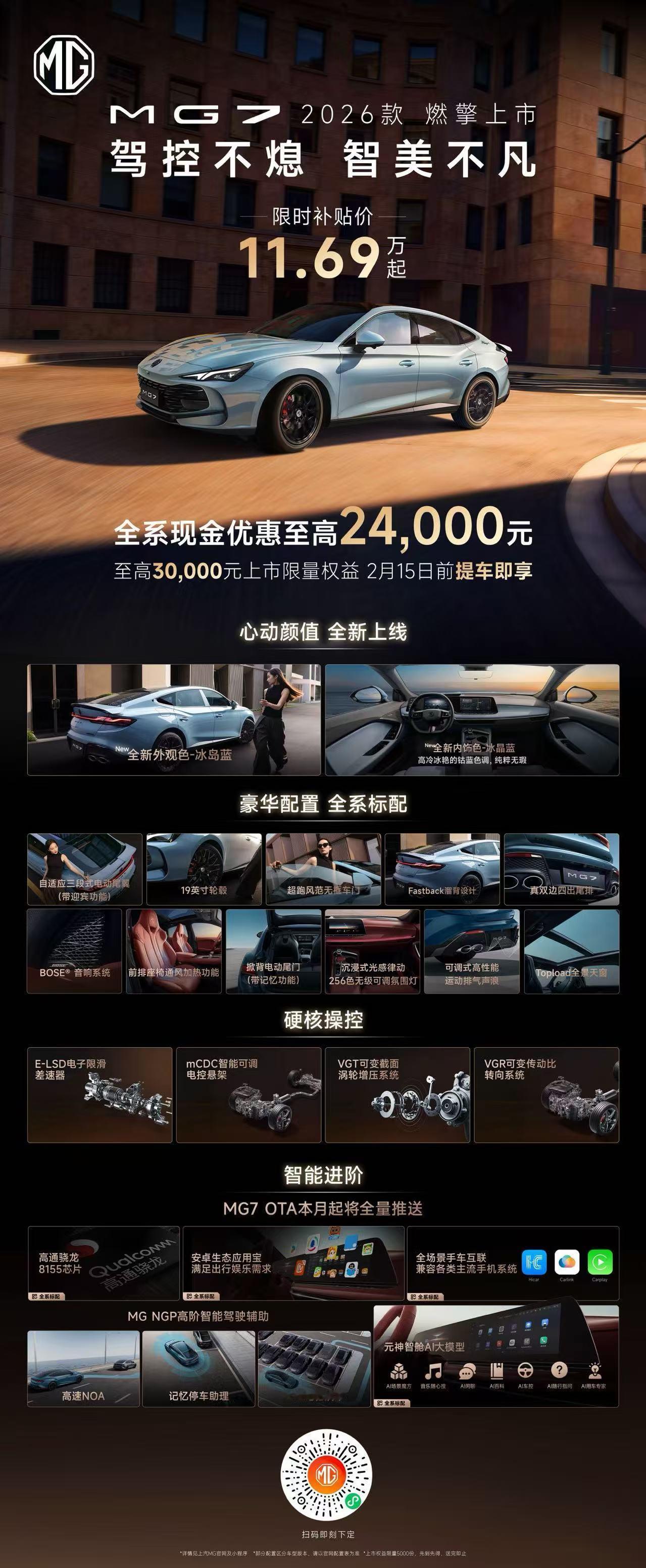 这两天跑广州去,就是为了试驾最新款2026款的MG7。只是普通试驾,所以优缺点我都能聊得很直接。但我万万没想到上汽MG公关居然藏得这么狠,直接来了一记回首掏。11.69万起,我的天……2.0T版本居然13.19万起,对比原来15万多起的2.0T版本,现在这价格也太香了……它完全把自己拉到了跟影豹R还有领克03➕的价格区间,但是MG7的尺寸,完全B级车尺寸了啊。而且这车真的好帅啊,超级原创,并且太有家族特色了。我在欧洲跑纽北小米的时候,三天两头就能看到MG,这牌子在欧洲确实卖得挺好的,能见度挺高。说真的,主办方安排的试驾确实有点无聊,但是我今天下午脱离教练管控之后的MG7试驾,这车开起来太爽了。等我尽快出视频吧。MG7 北京·北京首都国际机场