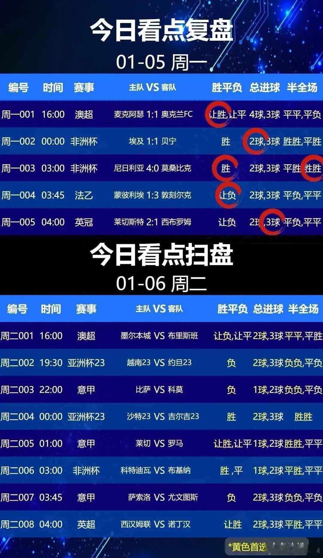 1月6日001 墨尔本城VS 布里斯班狮吼002 越南U23 VS 约旦U23 003 比萨 VS 科莫1907004 沙特阿拉伯U23 VS 吉尔吉斯斯坦U23