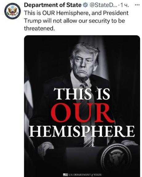·就在刚刚,美国国务院正式宣布, 1月5日,美国驻华大使馆官方账号上宣布,将西半球列为本国的特殊利益区。 “这是我们的半球,特朗普总统不会允许我们的安全受到威胁。” 这则公告的发布,并非外交辞令的常规更新,而是美国地缘政治战略的一次赤裸裸的摊牌。特朗普那句充满领地意识的宣言,直接将整个西半球公然划归为美国的私有领地,这种毫不掩饰的姿态,透露出一种旧时代帝国才有的傲慢。 为了给这一霸道行径披上合法外衣,被提名为国务卿的卢比奥巧妙地玩弄辞令,他刻意将西半球的行动与中东地区的军事介入区分开来,声称这并非“入侵”,因此完全无需经过国会的批准。 这番辩解的真实目的,是为行政部门的单边干预扫清所有法律和程序上的障碍,本质上是赋予白宫一把可以随时刺向邻国的利剑,而无需对任何人负责。 这套说辞的矛头,精准地指向了委内瑞拉,卢比奥口中所谓的“反毒”和“清除伊朗势力”,不过是精心挑选的借口,真正让华盛顿垂涎三尺的,是委内瑞拉那全球首屈一指的石油储量。 所谓的毒品问题,其根源在美国国内失控的消费市场,将责任转嫁给拉美国家,是美国一贯推卸责任的手法,而“伊朗势力”更是无稽之谈,其真实意图是切断任何可能挑战美国能源霸权的力量。 这种强烈的占有欲,深深植根于美国的历史基因之中,两百年前的“门罗主义”,便是这套逻辑的始祖,当时美国以“美洲是美洲人的美洲”为口号,名义上是抵御欧洲殖民者,实际上是将整个拉丁美洲圈定为自己的势力范围。 在此后漫长的岁月里,从武装吞并邻国大片领土,到在冷战期间频繁策划政变、扶持独裁政府,美国在拉美地区留下的,是一部充满干涉与掠夺的血泪史,如今重提“特殊利益区”,无非是门罗主义的幽灵在新世纪的还魂。 美国此刻如此急切地宣告对“后院”的绝对控制权,恰恰反映了其全球战略的力不从心,当美国在中东等地的全球性事务中深陷泥潭、感到疲惫之际,战略收缩便成了必然选择。 通过加固西半球这个大后方,将其打造成稳固的能源供给基地和战略缓冲区,是美国在霸权出现松动迹象时,试图稳住阵脚的自保之举,这并非实力的彰显,反而是焦虑的体现。 这种以邻为壑的战略,对拉美国家而言是一场灾难,长期以来,美国的经济制裁已经让委内瑞拉的经济濒临崩溃,民生凋敝,现在,美国非但没有收手,反而准备趁火打劫,彻底控制其石油命脉。 卢比奥声称此举“对委内瑞拉人民有利”,但这套说辞早已在伊拉克和利比亚被验证为谎言,美国所到之处,留下的从来不是繁荣,而是满目疮痍的烂摊子和无尽的动荡。 说到底,美国强行划定“特殊利益区”,是其霸权衰落过程中的一次应激反应,两百年来,其霸权逻辑一脉相承,但世界早已不是两百年前的世界。全球多极化浪潮不可逆转,拉丁美洲国家的自主意识也已经觉醒,他们渴望摆脱被控制的命运,寻求多元化的发展道路。 历史已经证明,任何将他国视为附庸、将地区视为私产的帝国行径,最终都无法逃脱失败的命运。卢比奥们的叫嚣再响亮,也无法掩盖美国全球掌控力正在下降的现实。这场试图用旧时代剧本导演的新世纪闹剧,从一开始就注定要在一个不再顺从的世界面前,迎来它必然的落幕。