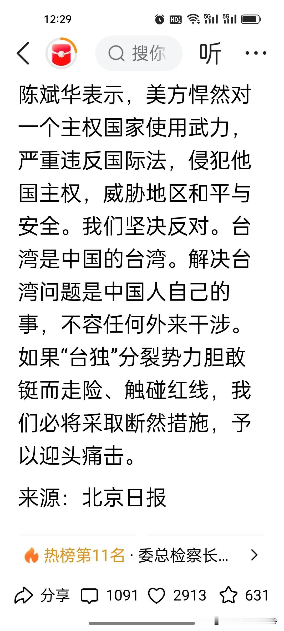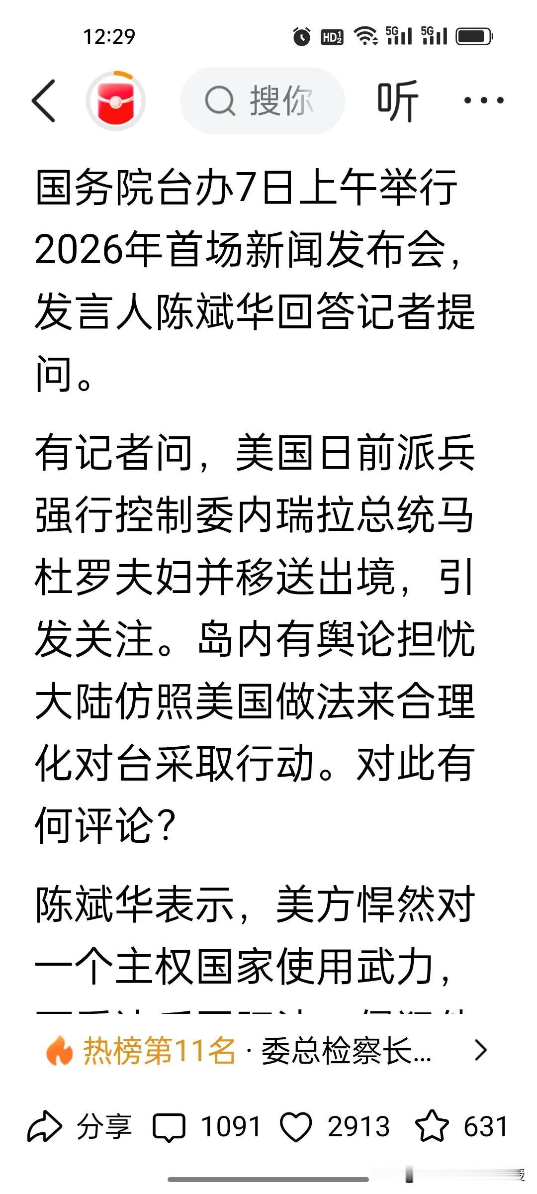 今天国台办的这番带有“迎头痛击”的铿锵有力的回应,应该让台当局更战战兢兢吧? 今天国台办的新闻发布会上,有记者问,岛内舆论担忧大陆会仿照美国的做法对台采取行动。对此有何评论? 我们的发言人表示的意思很明确,美国对主权国家这么干是不合法的,但台湾是我们自己的地盘,我们想怎么干都是可以考虑的,如果台独分子依然嚣张,我们肯定会果断采取措施,并且迎头痛击。 赖清德这些台独分子现在有这样的担忧很正常,毕竟美国对委内瑞拉本质是侵略,抓马杜罗是绑架,我们是收回本属于自己的领土,收拾分裂分子,性质不一样,他们如果真的肆无忌惮,不断挑战底线,可能收回领土,就是分分钟的事儿。