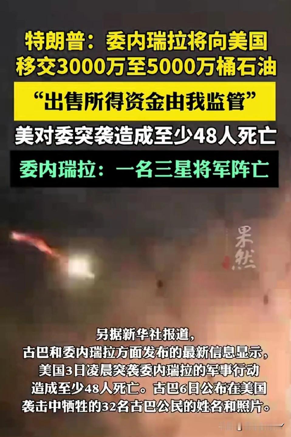 特朗普硬抢委内瑞拉石油?如意算盘打的叮当响,现实却满是坑。 当地时间1月3日,美军突袭委内瑞拉首都加拉加斯,强行控制马杜罗夫妇并移送美国受审。 就在6日,特朗普便官宣:委方将移交3000万至5000万桶石油,由他监管售油资金,能源部长即刻安排邮轮运往美国。 这操作简直把他国资源当自家库存,完全无视委内瑞拉主权!然而,委临时总统罗德里格斯直接强硬回击:“委内瑞拉没有外国代理人,人民不会屈从他人”,至今未认可所谓“石油移交”。 特朗普还召集雪弗龙、埃克森美孚等巨头,计划8日开会商谈投资重建事宜,妄图将委石油变成“提款机”。 但现实却给了他狠狠一击:委内瑞拉石油设施已破败50年,升级需1000亿美元和十年时间,企业因惧怕政局动荡而不敢投资;美国内63%民众反对动武,拉美多国集体谴责,联合国也召开紧急会议进行追责。 把军事干预当作抢资源的敲门砖,把国际法视若无物,特朗普这场霸权美梦,怕是要栽在“失道寡助”的泥潭里。 大家认为他这波石油野心能得逞吗? 特朗普称委将向美移交3至5千万桶石油委内瑞拉战局 冬日生活打卡季