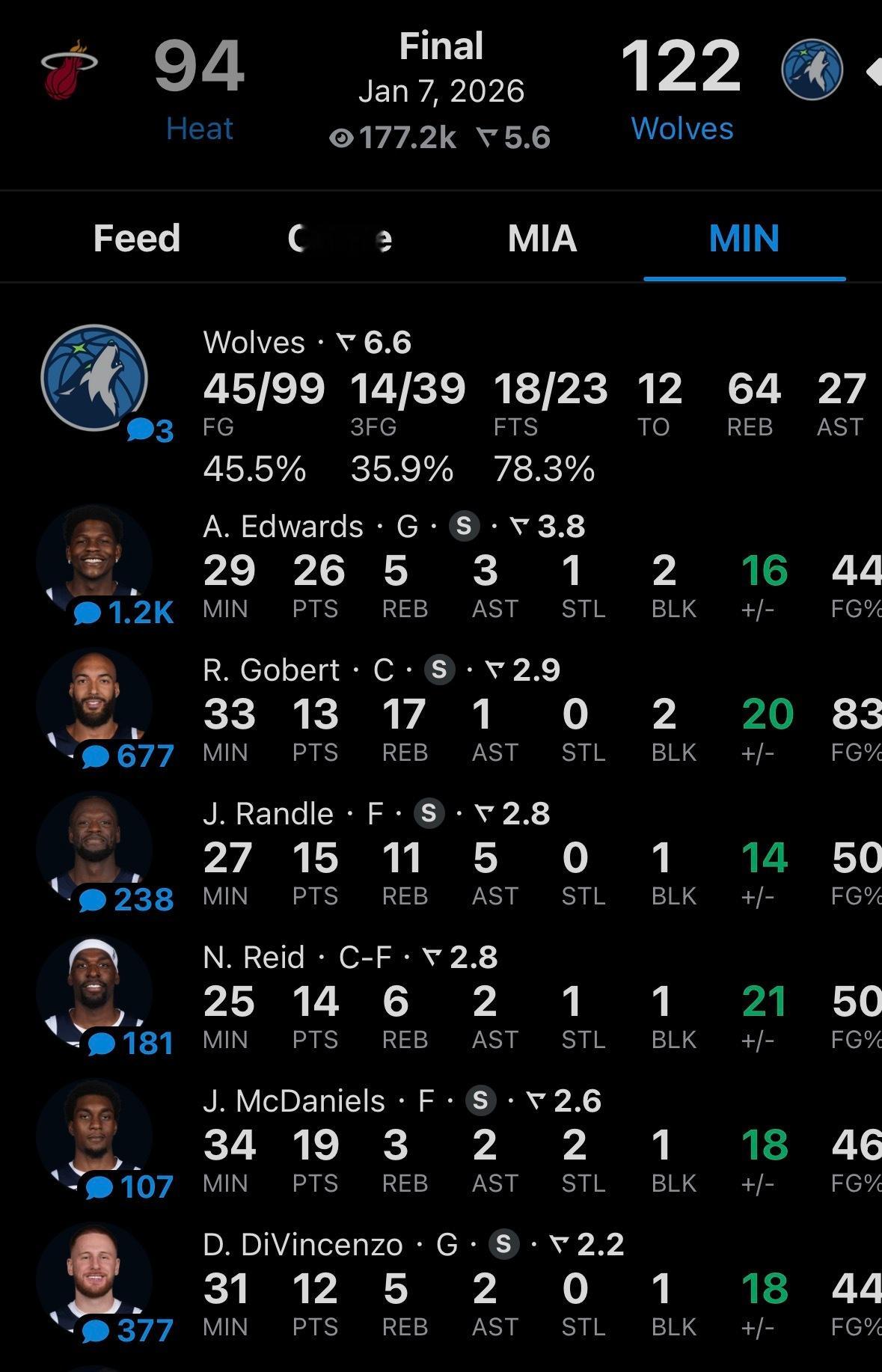 森林狼战胜热火攻防都出色的一场球,尤其是进攻手感全员在线真的很难得,迪温琴佐、麦丹都找到投篮包,而且防守针对性也不错。我觉得目前还是别冒然交易特雷杨了,真的可能适得其反