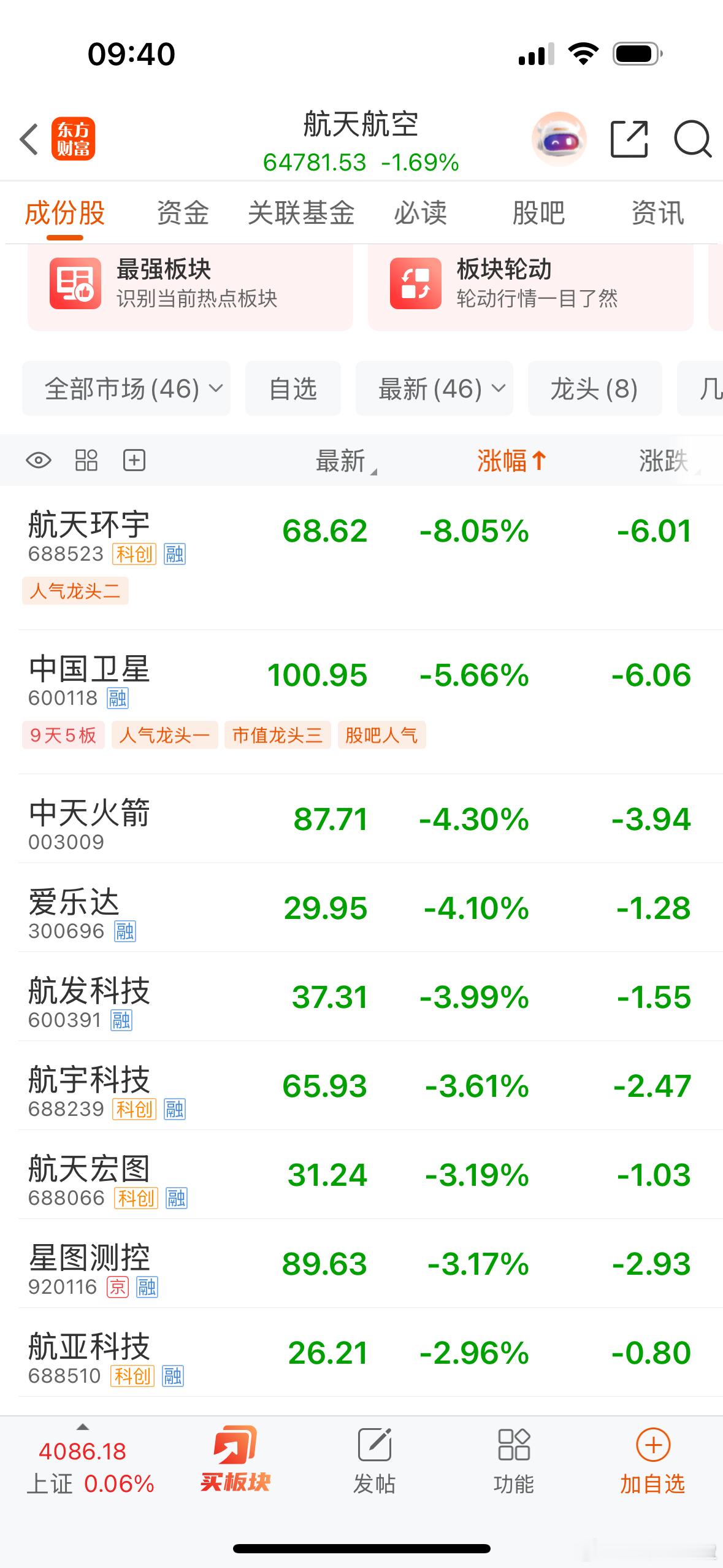降温了!特别是爆炒的商业航天,高位股,批量公告降温。一晚上停牌2家,预停牌1家。航天长峰,三博脑科,中国卫星,中国卫通,北斗星通,航天电子,翔宇医疗等核心股,今天表现非常关键。市场连续暴涨,开始降温,为的是行情能走的更远更高,强烈不持续,持续不强烈。另外,注意资金高低切轮动的方向。