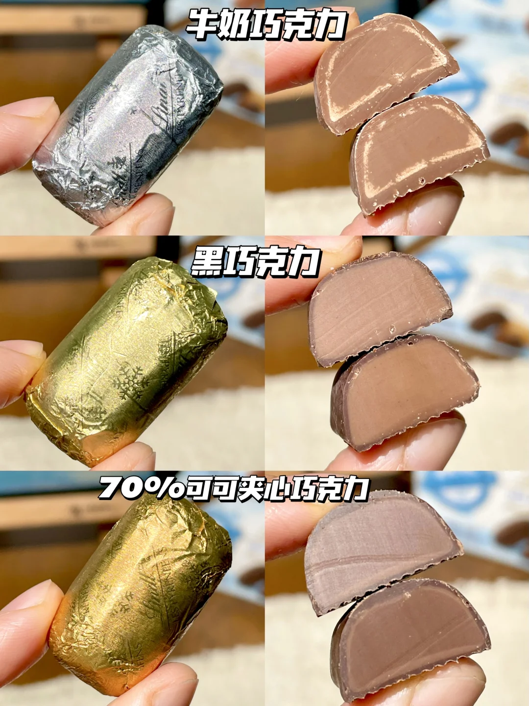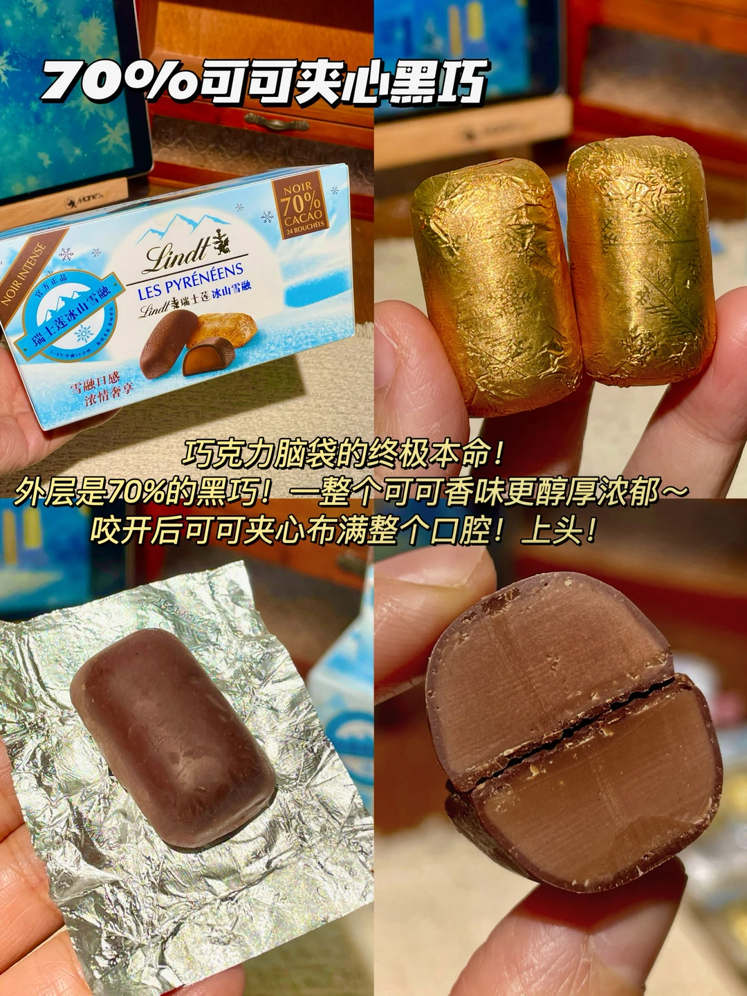 ❄️70%可可夹心黑巧:巧克力脑袋的终极本命!味道更集中,层次变化更明显,咬开后可可夹心铺满整个口腔。冬天吃幸福感直接拉满!
