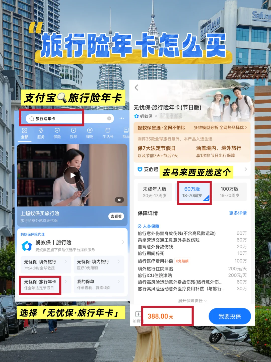 淡季去马来西亚玩真的好惬意,人少性价比也高,但意外还是防不胜防!吉隆坡暴雨导致航班延误被迫机场过夜;仙本那吃海鲜过敏挂急诊;亚庇拍照被顺走包包和外套……幸好出发前买了无忧保·旅行险年卡,这些糟心事才没有影响后续行程,还能继续探索双子塔、丹绒亚路日落和果冻海!