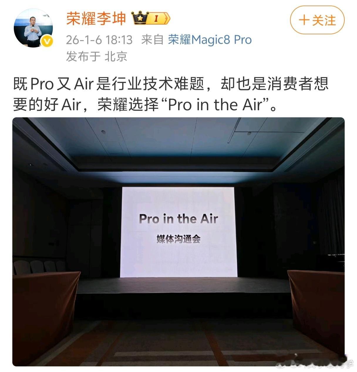 荣耀高管再度回应Air手机争议之前荣耀方飞总说要做一台既Pro又Air的手机,引
