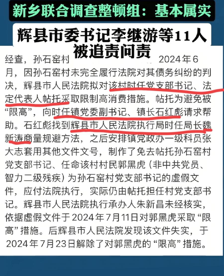 新乡通报智力残疾村民被顶包村支书。基本属实,11人被处分。村支书、镇长、法院执行局局长,不想背锅大聪明、知法犯法上级、内鬼,三人合谋策划找人背锅上演的一出奇葩荒唐事!机关算尽太聪明,败在了常识上,人为财死,欠了上任村支书近80万,人家能不豁出去跟你玩命吗?为新乡市调查组点赞,通报很详细,不遮不掩,快速处置!警示所有基层干部!