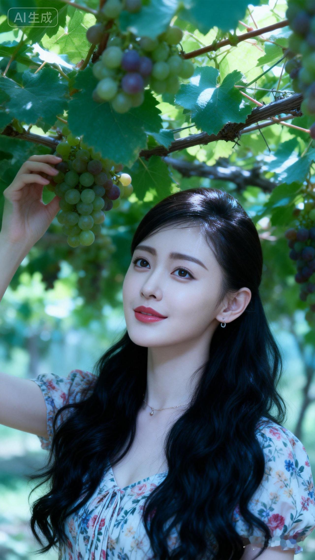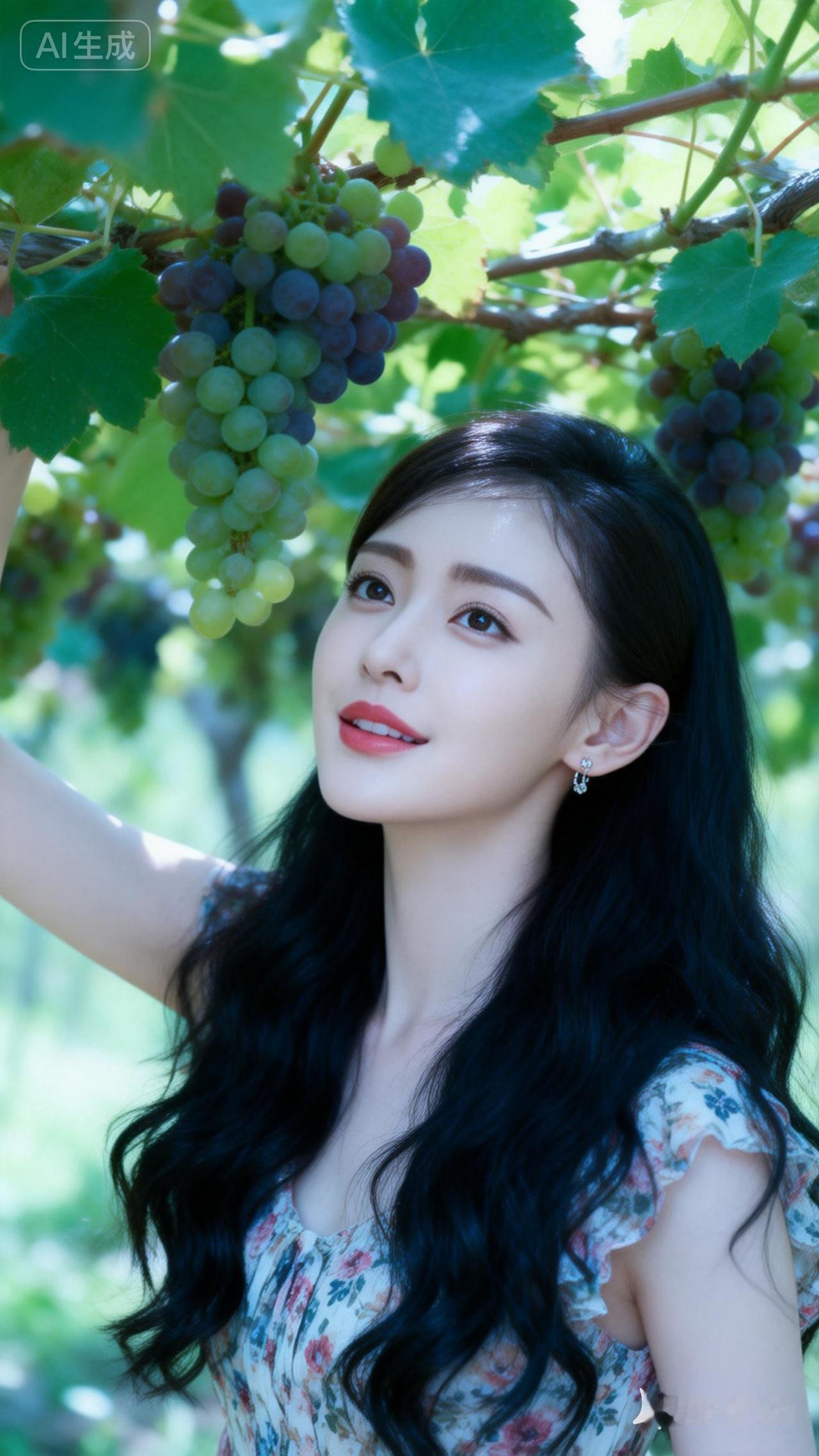 阳光下的葡萄园,甜美少女与紫葡萄的浪漫邂逅🍇💖