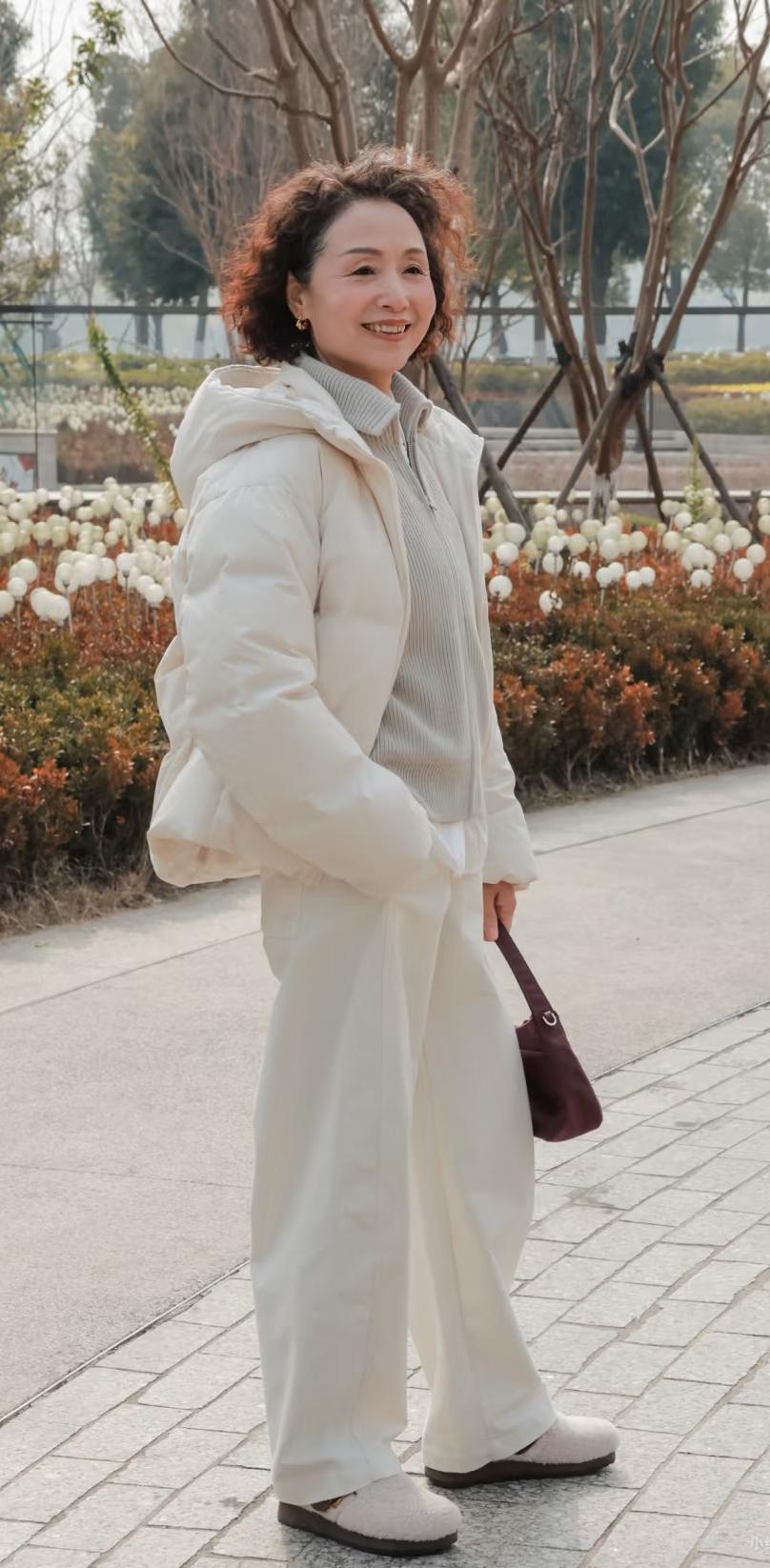 四五十岁的女性冬季穿白色羽绒服好看吗?个人认为,不仅好看,还显白显年轻。 首先