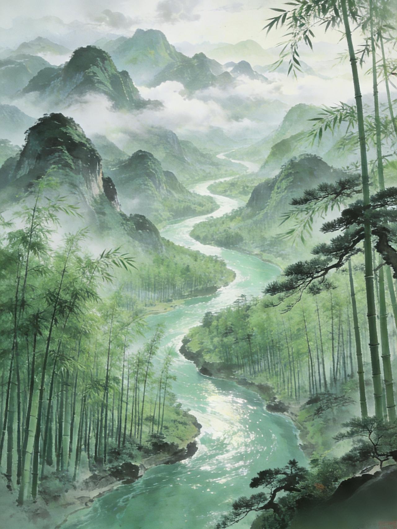 下联:百寻翠竹千竿松 我对的是“百寻翠竹千竿松”。上联以“青山”“绿水”勾勒出大地的轮廓,下联则用“翠竹”“青松”点染出山林的生机。“千里”“万重”对“百寻”“千竿”,皆是数量词的叠用,既保持了对仗的工整,又让两幅画面浑然一体,仿佛能看到青山绿水间,翠竹挺拔、青松傲立的清幽景致。