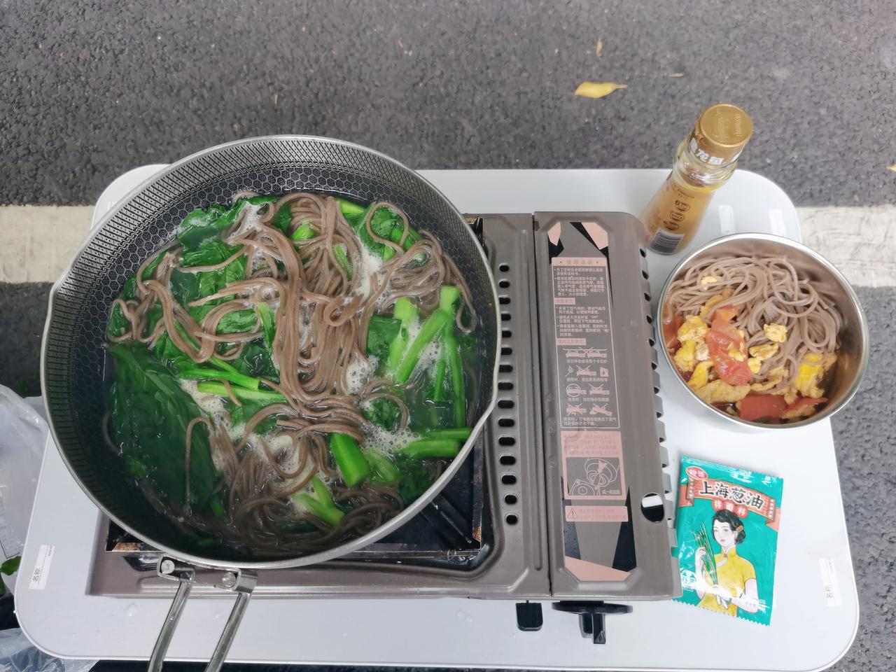 在佛山丹灶服务区睡了一宿,早起煮了一锅荞麦面,这就是我一天的饭,顶饱还控糖!9点
