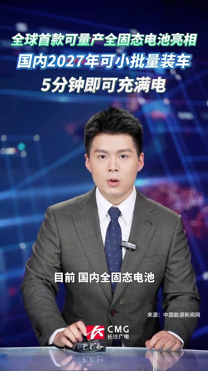 全球首款可量产全固态电池亮相,国内2027年可小批量装车,5分钟即可充满电。 来源:中国能源新闻网。 据官方媒体报道,全球首款可量产全固态电池近日问世。该电池能量密度可达400瓦时/千克,5分钟即可充满电,循环寿命10万次。极端温域下性能稳定,可从根源上杜绝起火风险,成本低于传统锂电。 目前国内全固态电池尚处中试阶段,预计2027年可小批量装车验证,2030年前后有望规模化量产。