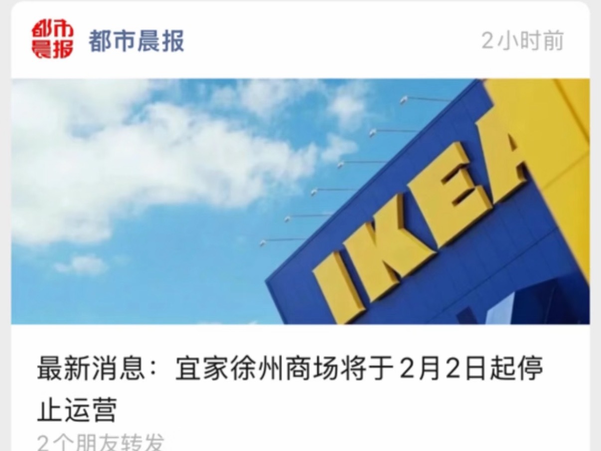 宜家宣布关闭7家门店我们徐州的宜家也要闭店了,2月2日停止运营。徐州又少了一个地标性建筑,也少了一个周末打卡地,宜家的餐厅和冰激凌还挺好吃的,要说再见了