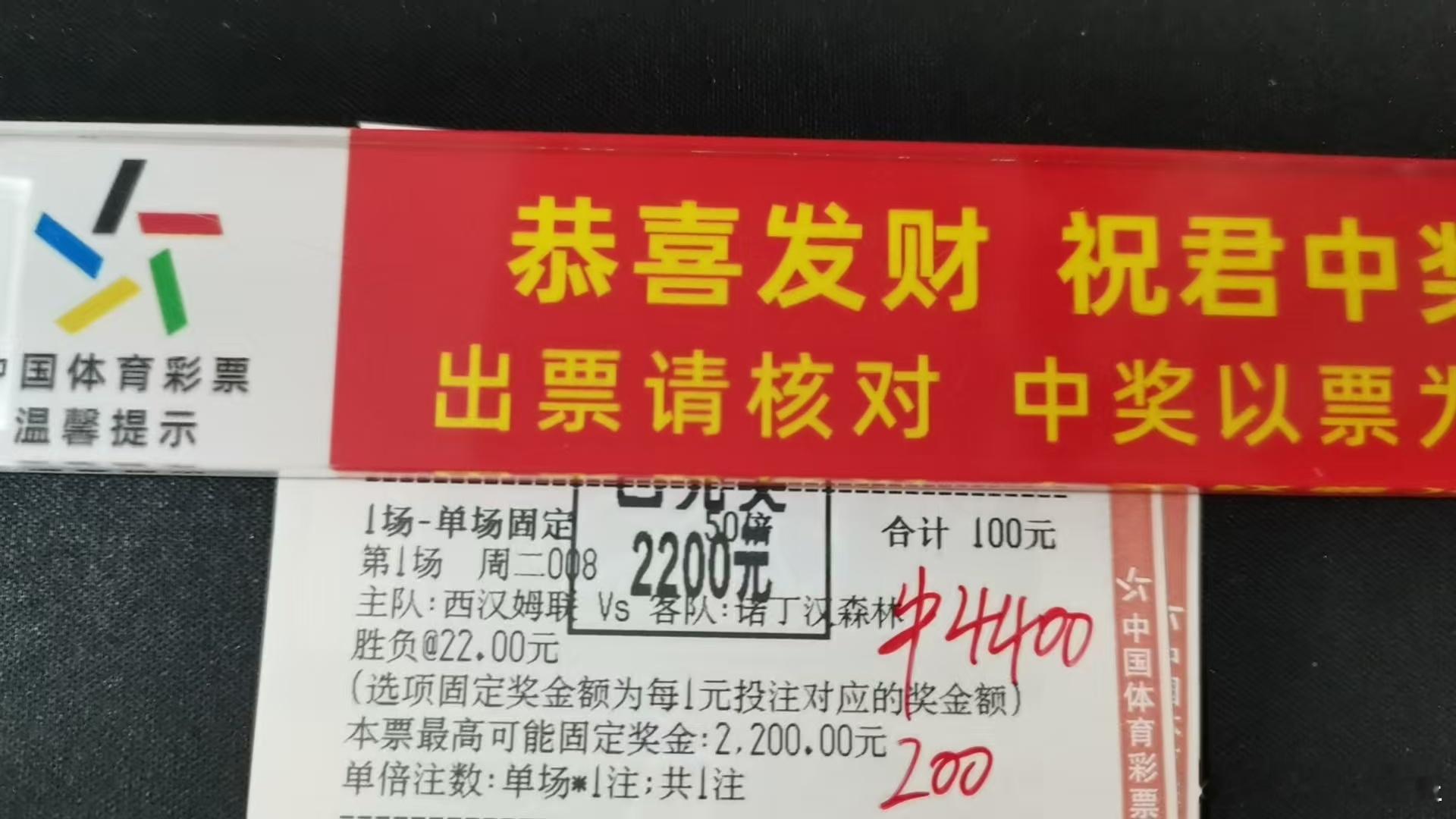 什么是“降维打击”?就是当别人还在纠结 1.5 的蚊子肉时,你已经精准锁定了 22.0 的神赔。西汉姆联这场,单场单挑。200 搏 4400。这种 22 倍的快乐,不是赢了多少钱的问题,是对比赛阅读能力的极致炫耀