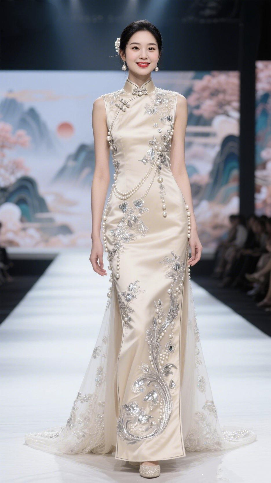 《当现代遇上旗袍,惊艳了时光》 玻璃幕墙切割出的光, 落在云纹滚边的襟上。 高跟鞋叩响柏油的长巷, 盘扣轻拢着百年的香。 写字楼的风,吹起真丝的浪, 鼠标与绣针,在时光里对望。 烫金的合同旁,一朵玉兰含苞待放, 铅笔划过的线条,晕染了月牙襟的霜。 地铁的轰鸣里,藏着苏绣的巧, 咖啡的蒸汽,漫过斜襟的俏。 当西装的笔挺遇上旗袍的窈窕, 不是碰撞,是岁月的相拥相照。 霓虹闪烁的街角, 她挽着现代的衣角, 一步,是车水马龙的喧嚣, 一步,是烟雨江南的韵脚。 惊艳的从来不是衣袍, 是新生与古典的深情缠绕, 在时光的长河里, 开出永不褪色的花,灼灼其华。 江南风旗袍照 旗袍古典新中式 新中式旗袍美女 旗袍古韵写真 旗袍美学 旗袍巷景照 旗袍园林