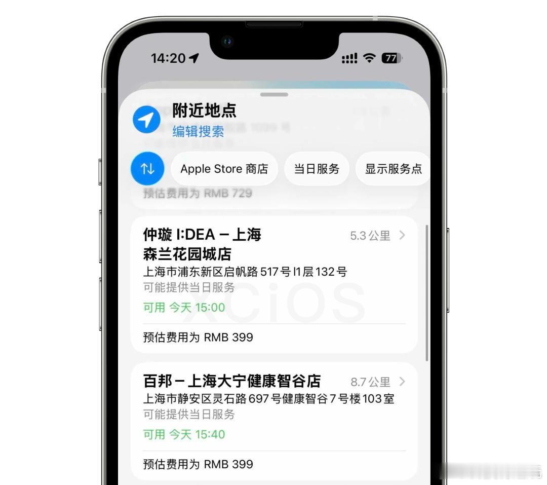iPhone 13全系开启限时半价换电池一般用了3-4年,电池80%以下可以考虑更换一.预约教程1.在app store下载apple支持2.选择自己的13系列设备3.选择电池服务4.点击立刻检查5.点击继续6.点击查看服务点7.选择自己就近的门店,显示为399元的8.最后更换完毕会显示原装电池PS:截止时间大概3.4月份