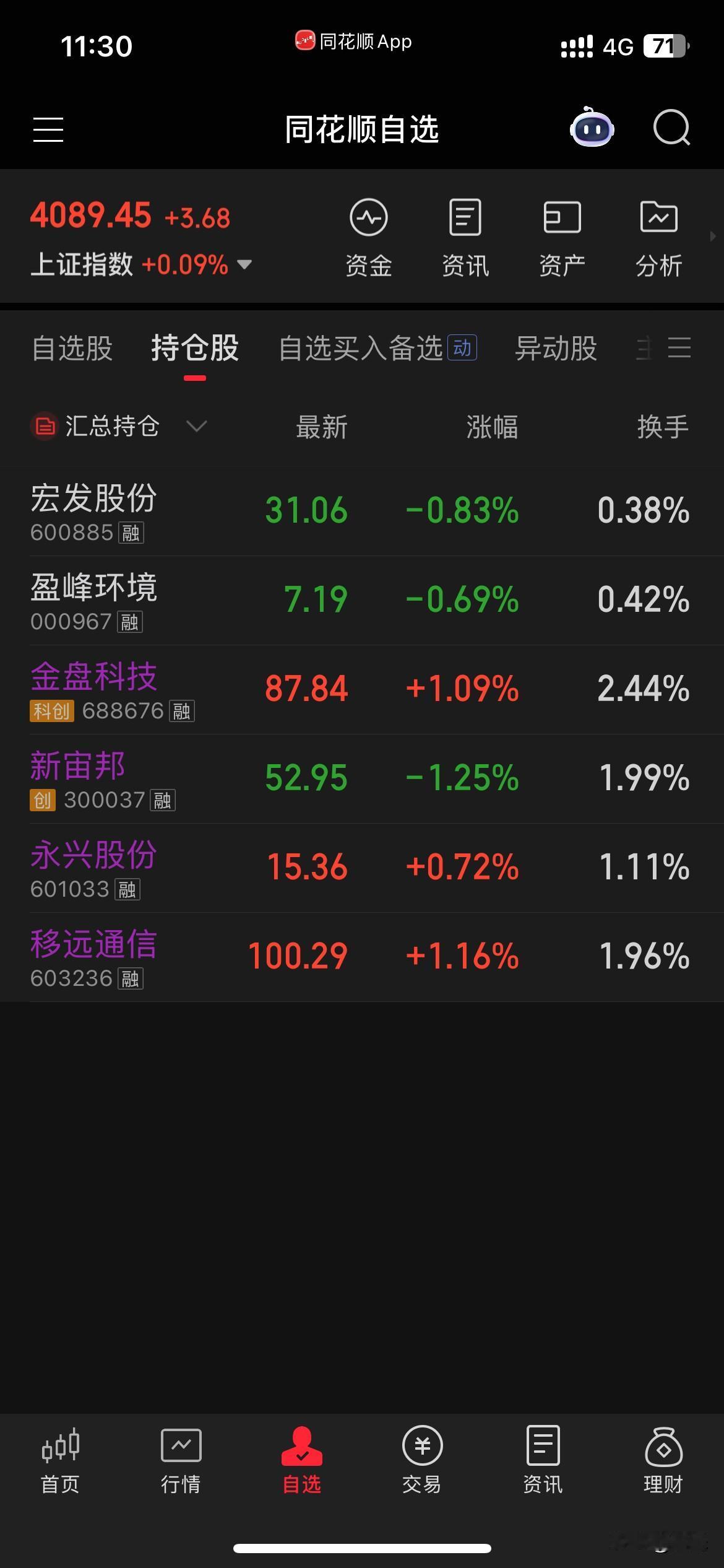 大盘今天低开,然后逐步上扬,个股涨多跌少,但成交量萎缩明显。我的股涨跌各半,微红2百多。上午管住手没有操作。一直盯着雅克,这股有存储芯片和光刻机概念,都是目前比较火的热点,高位不太敢买,再等等也许下午或明天有机会[呲牙]
