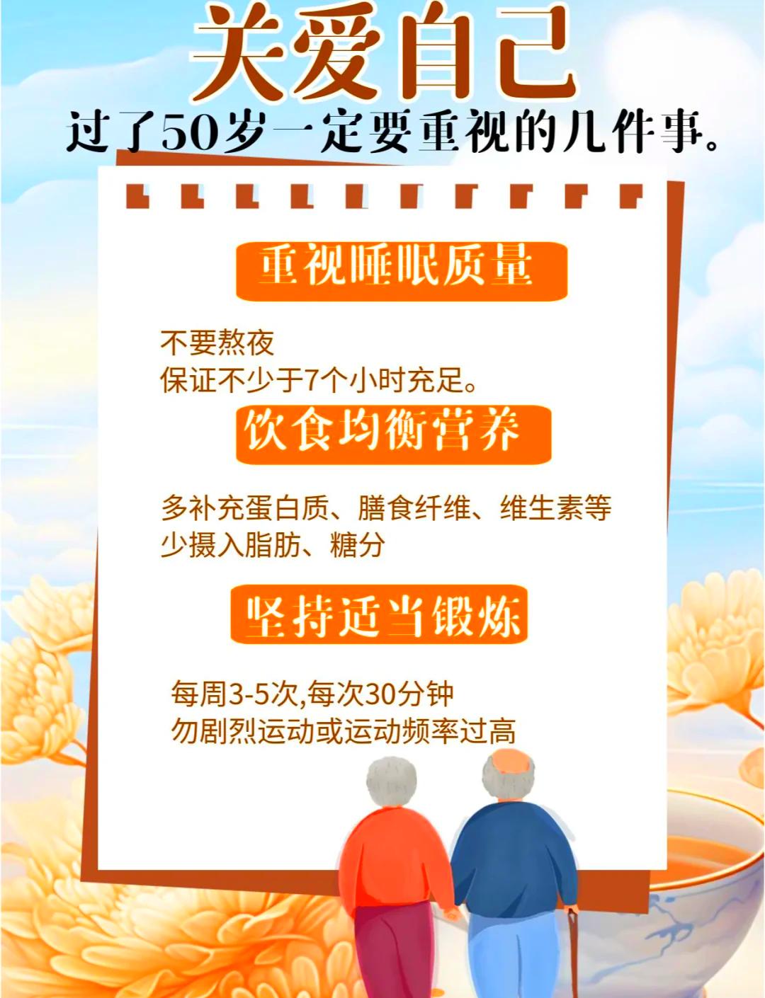 55到65岁黄金十年!记住这6条,身体硬朗少遭罪! 两性关系:55—65岁这十年,护命之道不在锻炼,而在守住这6条 老话常说“五十而知天命,六十而耳顺”,55到65岁这十年,是人生的“黄金转折期”,更是身体的“多事之秋”。很多人以为护命就是跑跑步、练练操,却忽略了比锻炼更重要的6条“保命准则”。守住这6条,比天天健身房打卡更管用,男女都适用! 第一条:守住嘴,别贪杯也别贪味 这个年纪,肠胃和肝脏早就经不起折腾。别再和年轻时一样,顿顿重油重盐、胡吃海喝;也别抱着“小酌怡情”的想法,天天喝上二两。清淡饮食,多吃杂粮蔬菜,少吃高糖高脂;酒能戒就戒,烟能断就断,嘴巴上的克制,就是给身体上的保险。 第二条:守住心,别钻牛角尖 人到这个岁数,什么功名利禄、是非恩怨,都该看淡了。别为了儿女的琐事愁眉不展,别为了过去的得失耿耿于怀,更别因为一点小事就暴跳如雷。心态放宽,遇事多往好处想,笑一笑十年少,这份豁达,是最好的“养心丹”。 第三条:守住觉,别熬夜别硬熬 熬夜是衰老的加速器,这个年纪的身体,根本耗不起。别再抱着手机刷到半夜,别再为了追剧熬到天亮。晚上11点前准时睡觉,中午眯上半小时,保证充足的睡眠,比吃多少保健品都强。睡得香,精神才足,身体才会硬朗。 第四条:守住情,别冷落身边人 55到65岁,夫妻相伴走过大半辈子,早已是彼此最亲的人。别因为日子平淡就懒得沟通,别因为鸡毛蒜皮就拌嘴冷战。饭后牵着手散散步,睡前聊几句心里话,偶尔给老伴买个小礼物,这份温暖的陪伴,能驱散晚年的孤独,也能让心情更舒畅。 第五条:守住闲,别瞎忙别累着 退休后别总想着再去打拼赚钱,也别把自己困在带孙子、做家务的琐事里。留点时间给自己,养养花、种种草,下下棋、钓钓鱼,培养一个能打发时间的爱好。忙要忙得有度,闲要闲得有味,劳逸结合,才是晚年的正确打开方式。 第六条:守住检,别嫌麻烦别拖延 这个年纪,身体的小毛病容易拖成大问题。别觉得自己身体硬朗就不去体检,每年一次全面检查,有不舒服及时就医,别硬扛、别乱吃药。早发现、早调理,才能把疾病扼杀在摇篮里,这是对自己负责,也是对家人负责。 55到65岁这十年,不是人生的下坡路,而是享福的新起点。锻炼只是辅助,守住这6条准则,才能活得健康、活得舒心,安享晚年! 你现在正处在这个年龄段吗?这6条你能做到几条?评论区聊聊! 五十岁后健康 60岁健康秘诀 寿命真相