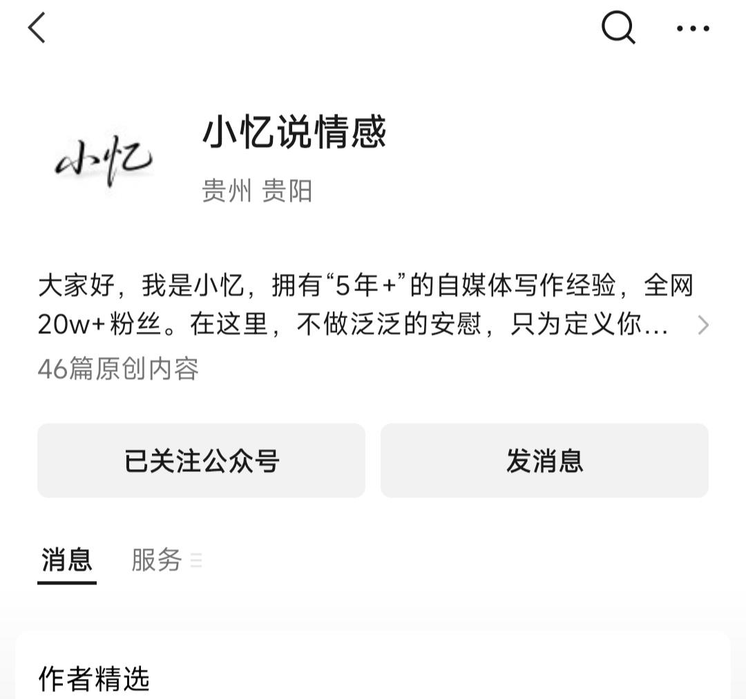 人到中老年,最怕的不是没钱,而是没人懂你。 人这一辈子,年轻时为子女奔波,为生计操劳,把所有的温柔和耐心都给了外人,唯独忘了心疼自己。 到了中老年,儿女长大成人,有了自己的小家庭,能陪在身边的时间越来越少;老伴儿忙里忙外,话到嘴边又咽了回去。多少个深夜,你看着窗外的月光,心里有千言万语,却找不到一个可以倾诉的人。 你是不是也有过这样的时刻:明明心里委屈,却要强装笑脸说“我没事”;明明渴望被关心,却嘴硬道“不用管我”;明明有很多话想聊,翻遍通讯录,却不知道该打给谁。 其实,人到中老年,最需要的不是物质上的富足,而是精神上的慰藉。那些藏在心里的心酸、无奈和小欢喜,都需要一个懂你的地方,好好安放。 我建了一个“中老年情感 公 众 号”,这里没有鸡汤说教,只有实实在在的共鸣。我们一起聊聊子女教育的烦恼,说说夫妻相处的门道,分享晚年生活的乐趣。 想找到同频的人,就来公众号找我吧,每天一篇暖心好文,陪你走过往后的岁岁年年。 关注我,从此你的心事,有人听;你的欢喜,有人懂。 公 众 号名称:小忆说情感