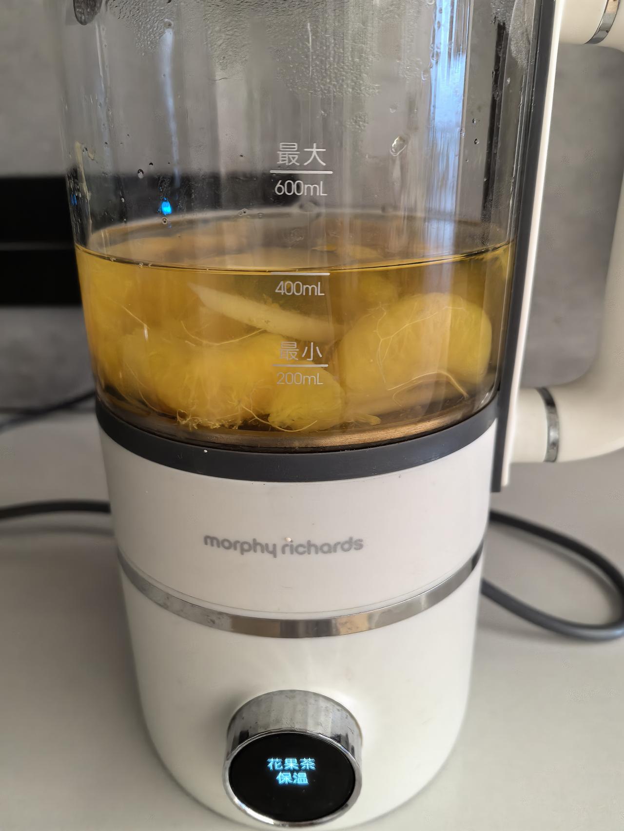 天气寒冷,让我这个水果爱好者很痛苦,很想吃苹果,橘子,梨,甘蔗,可吃了牙齿和胃就会提抗议。 上次肠胃镜做出来是慢性胃炎急性活动,医生说不要吃寒凉的水果,吃了伤胃。还有牙齿一碰到冷的就酸胀难受。 忍了好几天没吃,可心情很沮丧,今天实在是忍不住了,于是自己想办法,找出养生壶,把橘子和苹果放在一起煮水果茶,再加上点冰糖,没想到酸酸甜甜,暖暖和和的很好喝。 既解决了我的水果馋虫又保护了我脆弱的胃和牙,真乃一举两得。