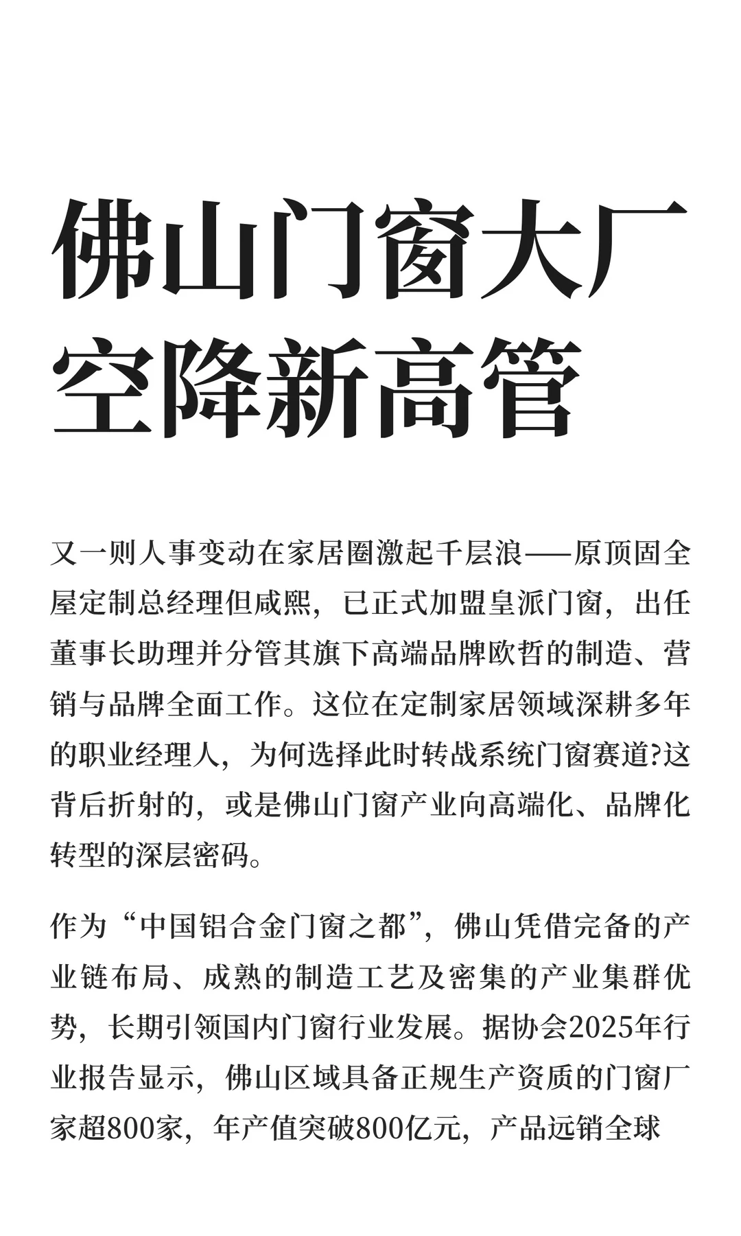 佛山门窗大厂空降新高管