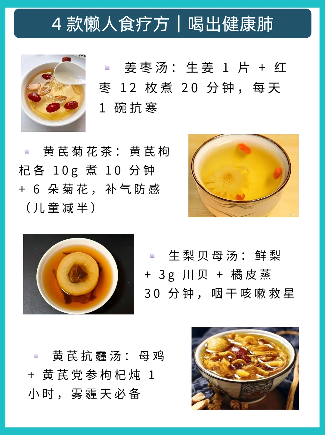 ▫️ 黄芪菊花茶:黄芪枸杞各 10g 煮 10 分钟 + 6 朵菊花,补气防感(儿童减半)